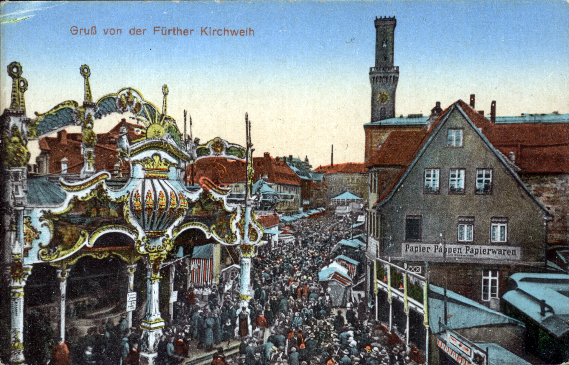 | Dateiinfo (Bild-Unterschrift und Info-Box, automatisch erstellt) | Kirchweihkarte buntes Treiben, ca. 1910er- oder 1920er-Jahre Lizenz: CC BY-SA 3.0 | ||