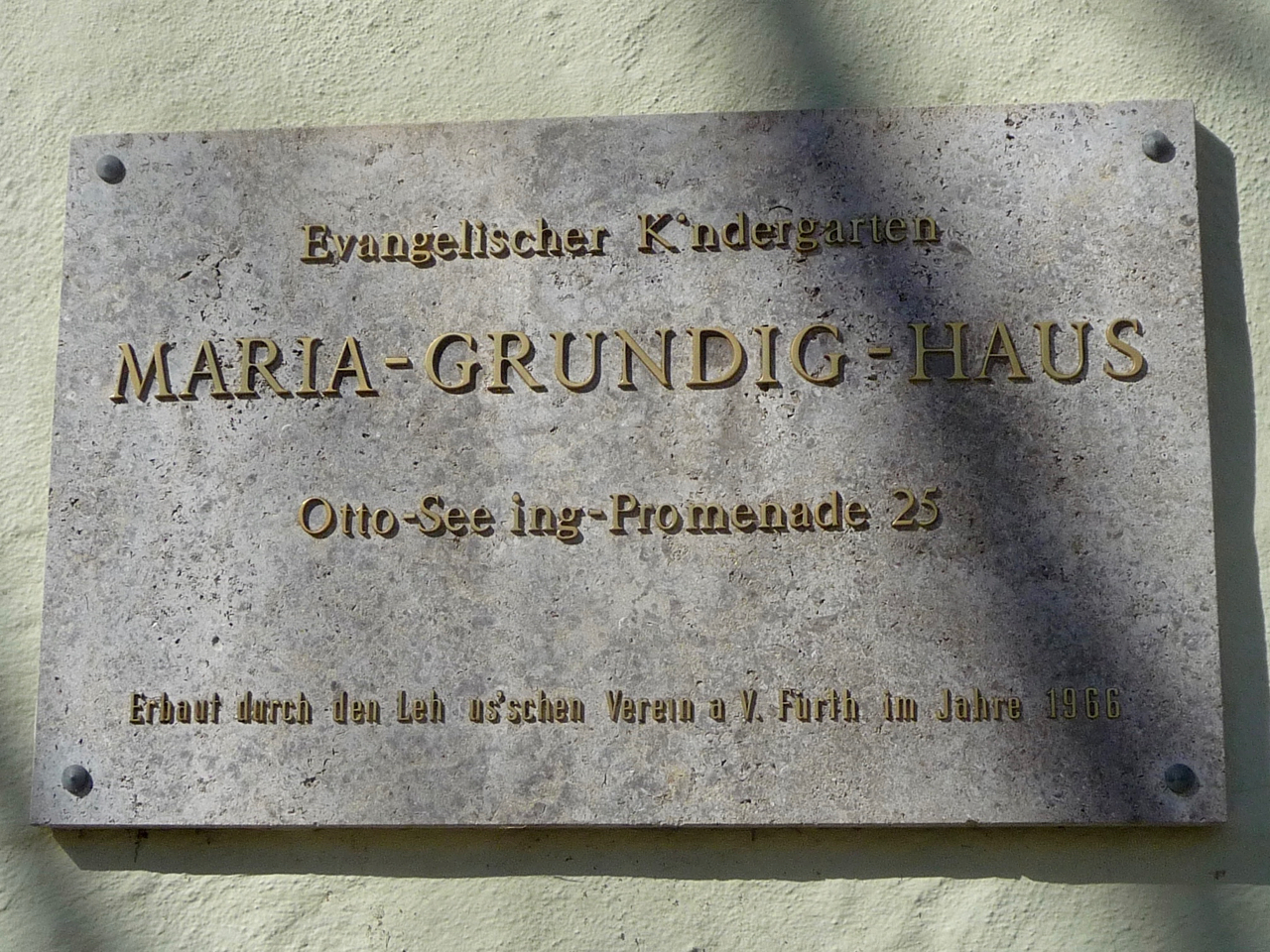 | Beschreibung | Kindertagesstätte der Auferstehungskirche: Gedenktafel an der Hofseite des Westflügels, März 2018 | ||