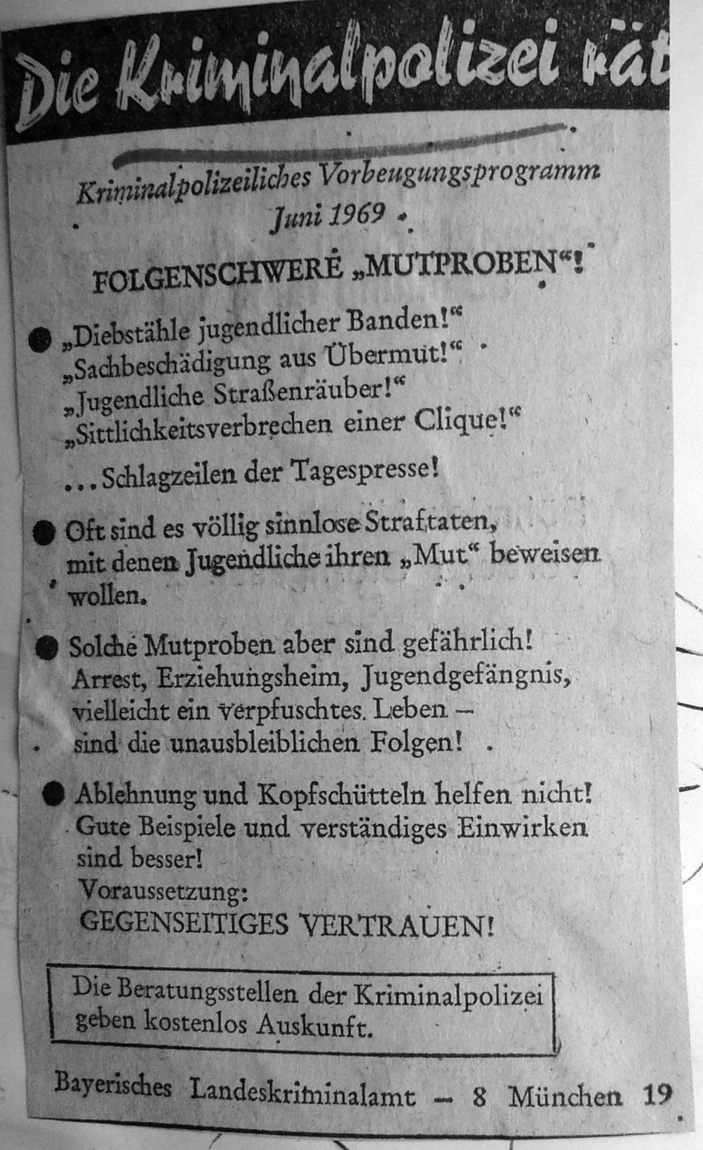 | Beschreibung | Aktion „Die Kriminalpolizei rät“ in den Fürther Nachrichten (23. Juni 1969) | ||