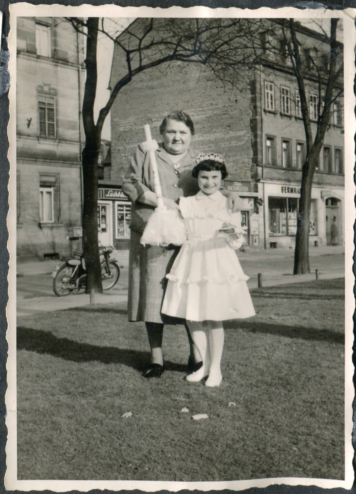 | Beschreibung | Kommunion Aufnahme von 1955 am Kaiserplatz Richtung Waldstraße 9 und 13 in der Kirche St. Heinrich und Kunigunde | ||