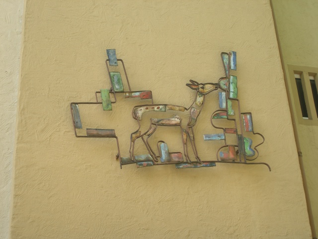 | Dateiinfo (Bild-Unterschrift und Info-Box, automatisch erstellt) | Drahtplastik, Eisen und Email, 1960, 2014 saniert. Lizenz: CC BY-SA 3.0 | ||