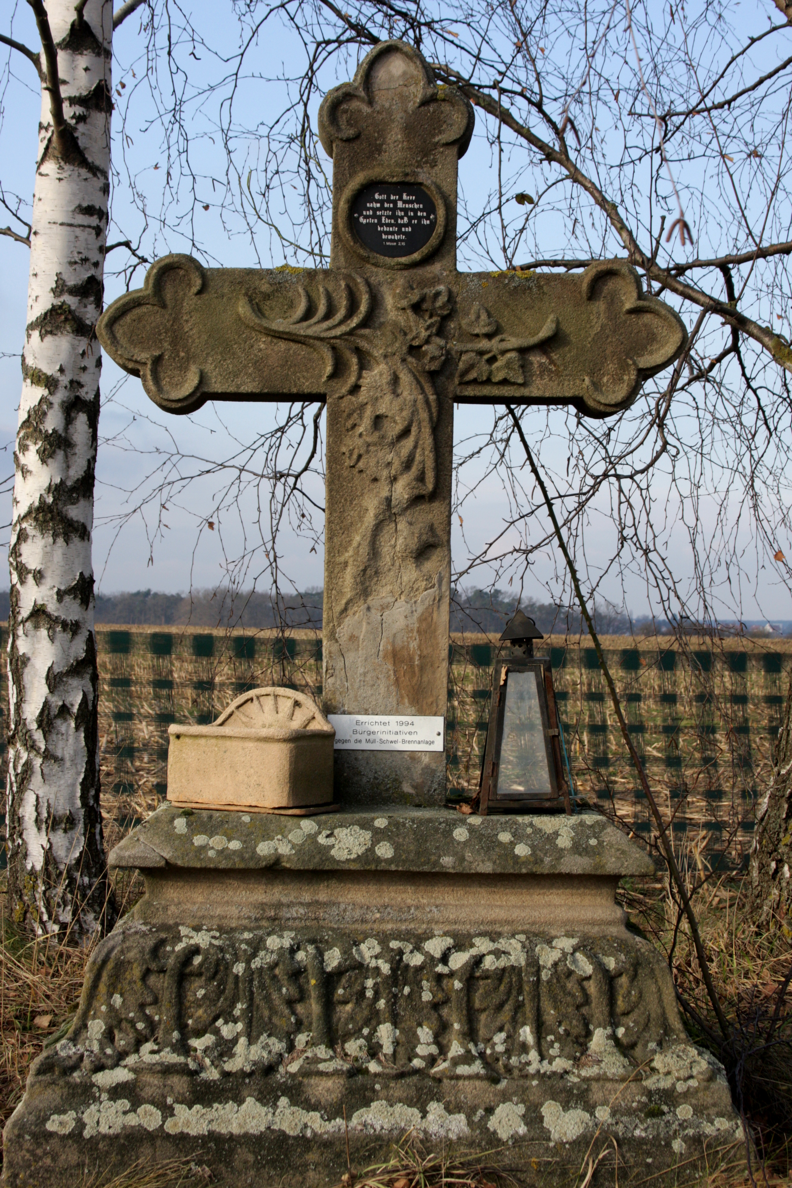 | Beschreibung | Von den Bürgerinitiativen gegen die Müll-Schwelbrennanlage aufgestelltes "Protest-Marterl" gegenüber der Abzweigung des Aischwegs von der Mainstraße | ||