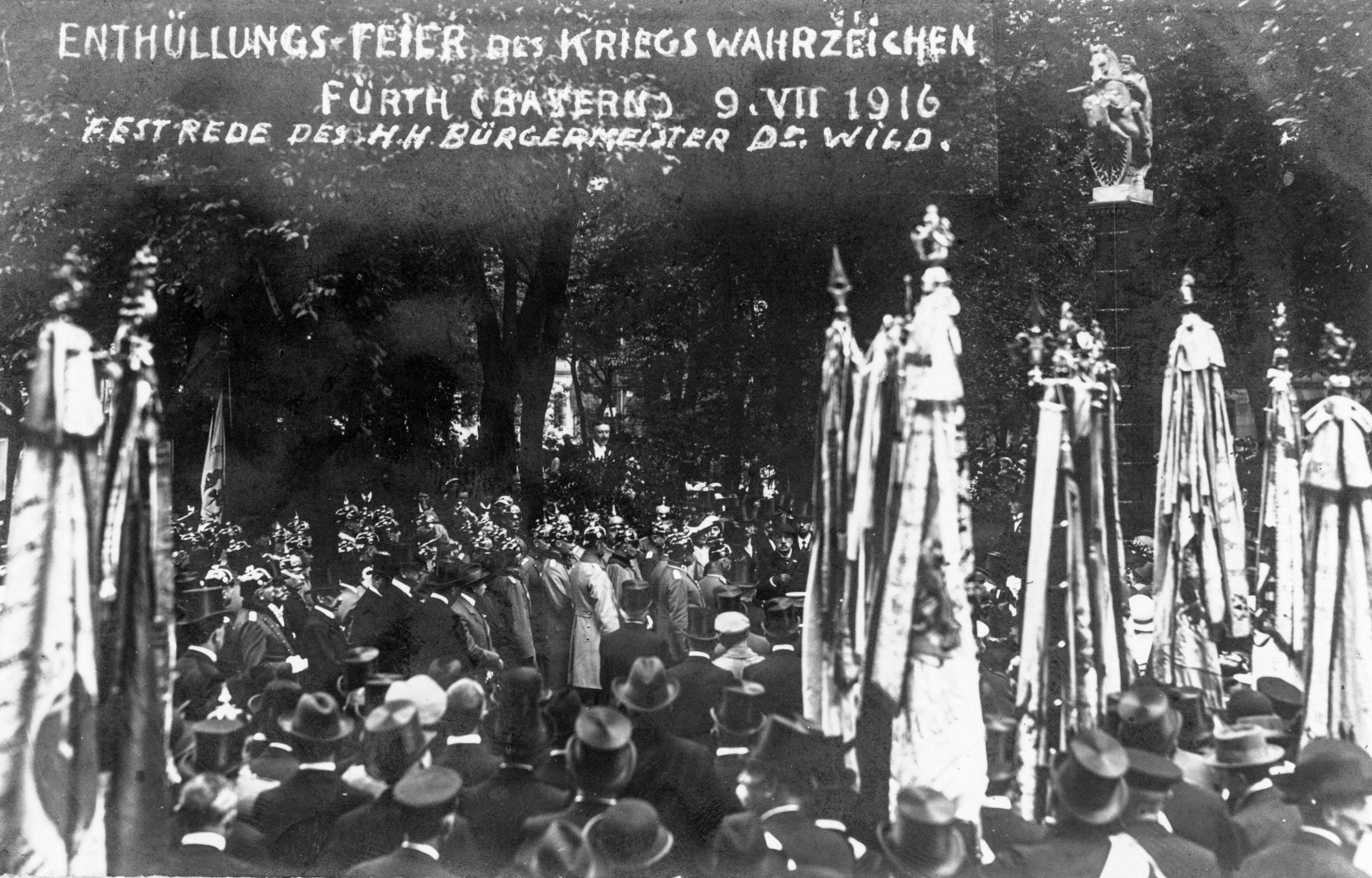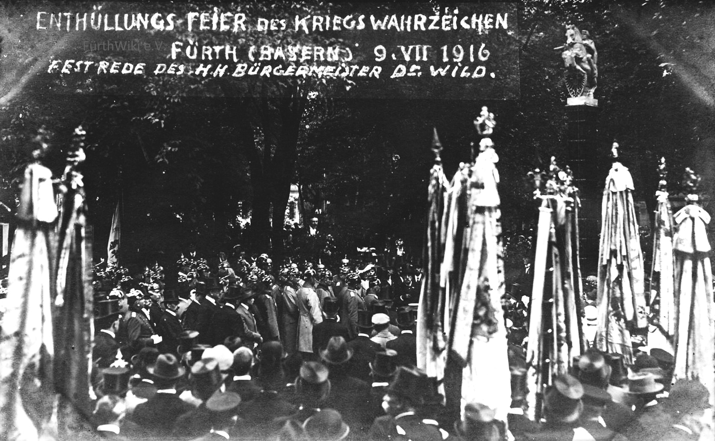 | Beschreibung | Enthüllungsfeier des Kriegswahrzeichens auf der heutigen Dr.-Konrad-Adenauer-Anlage mit Oberbürgermeister Dr. Wild, 9. Juli 1916 | ||