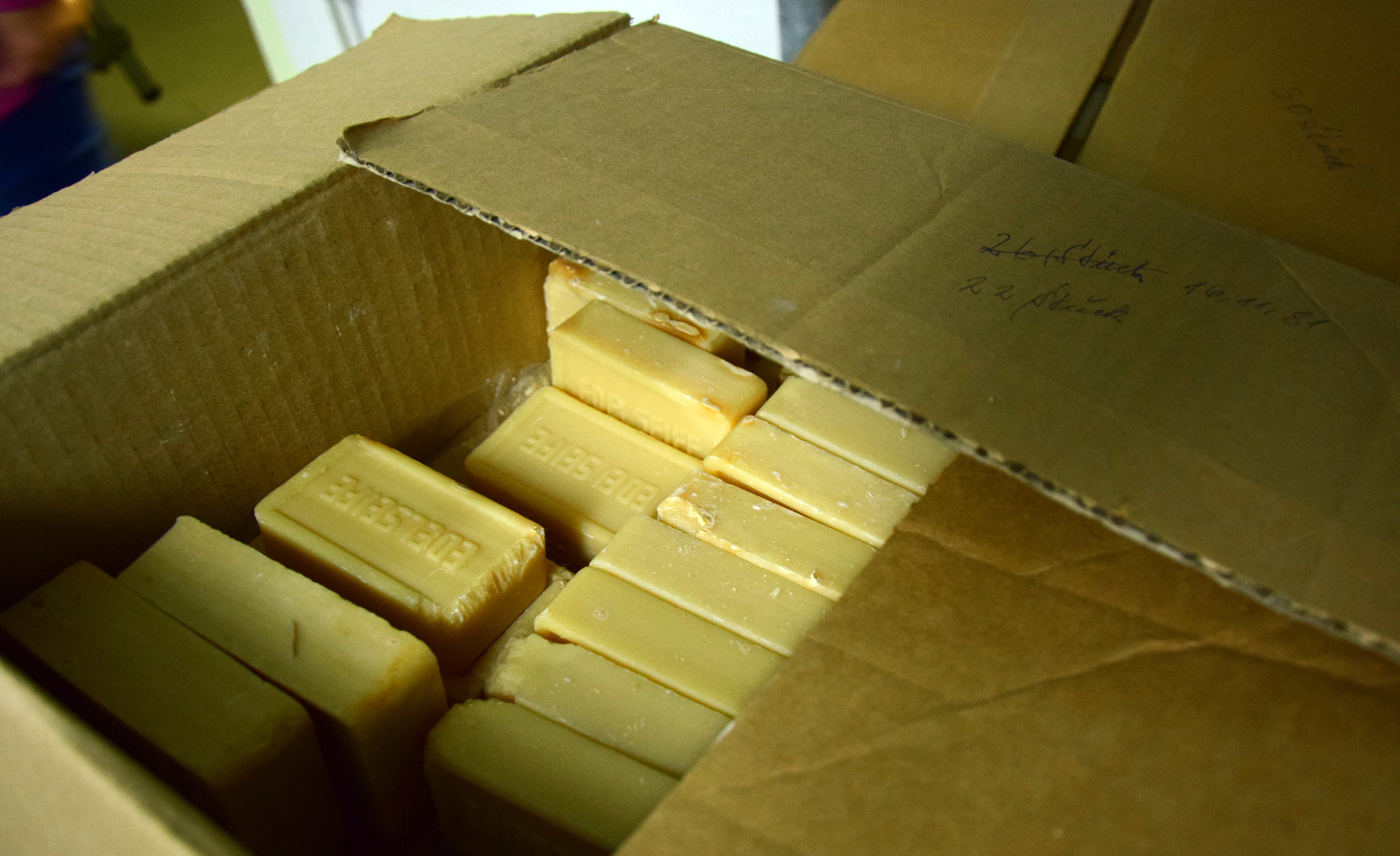 | Beschreibung | Abgezählte Kernseife im Kronacher Bunker, August 2019 | ||