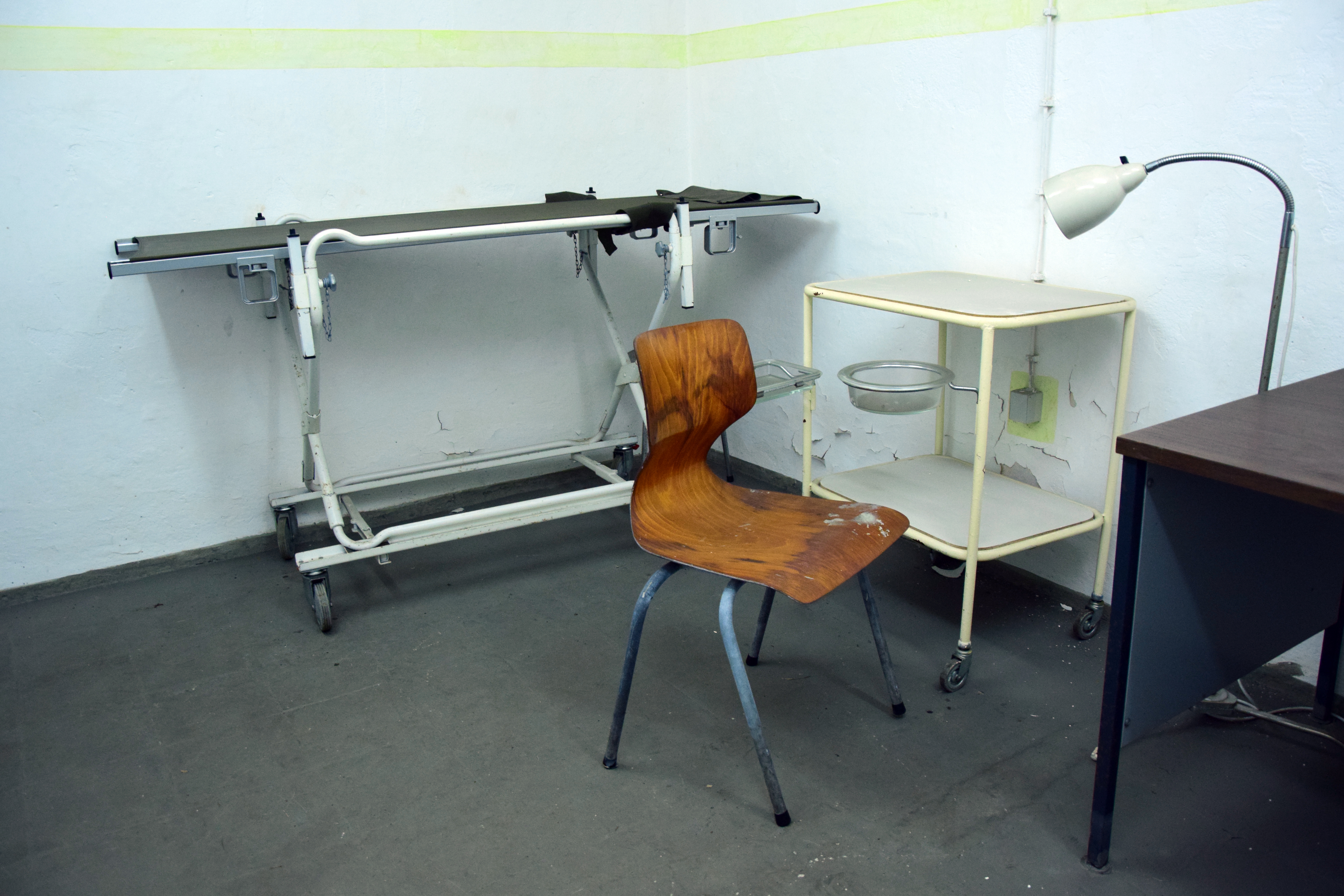 | Dateiinfo (Bild-Unterschrift und Info-Box, automatisch erstellt) | Behandlungsliege im Kronacher Bunker, August 2019 Urheber: Kamran Salimi<br><br>Lizenz: CC BY-SA 3.0 | ||