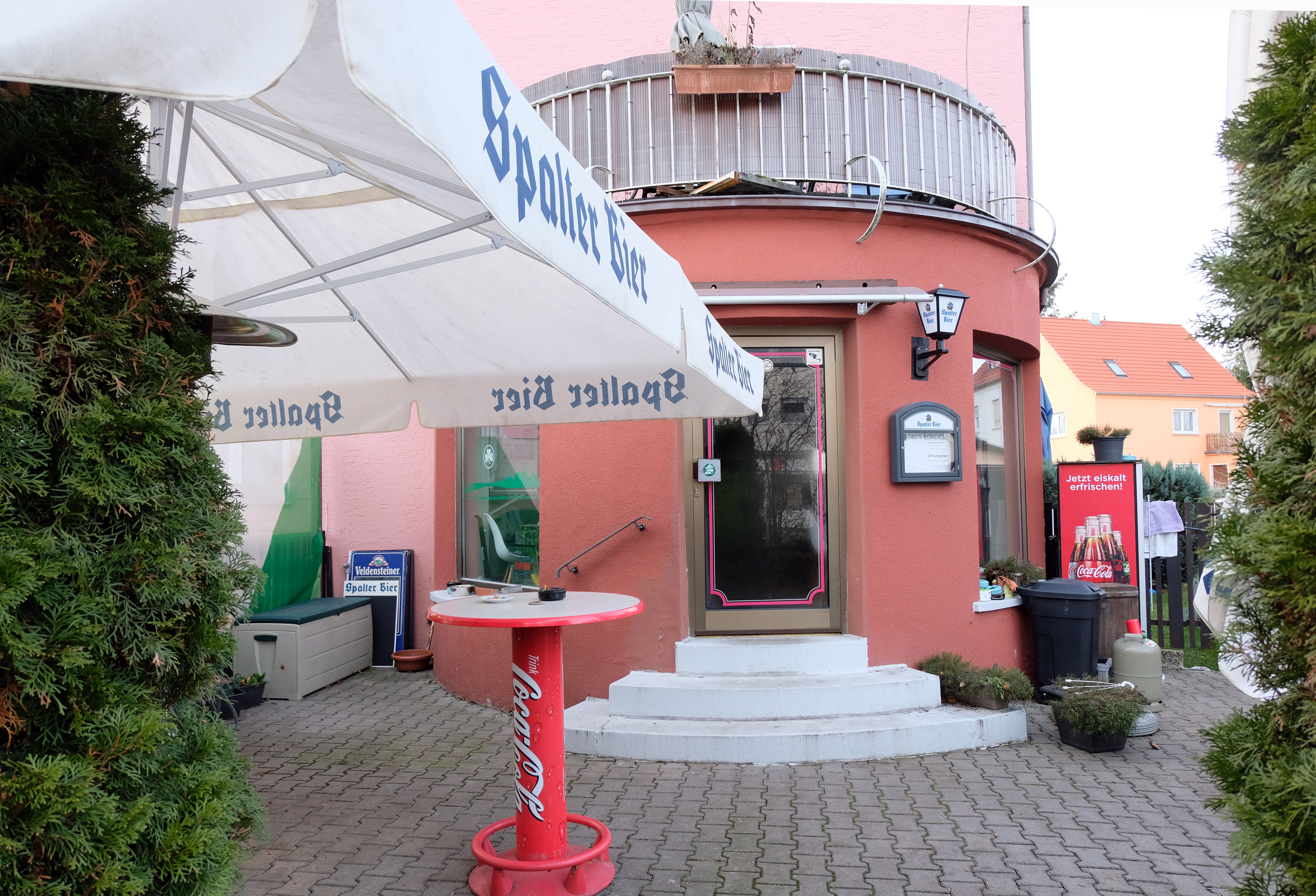 | Dateiinfo (Bild-Unterschrift und Info-Box, automatisch erstellt) | Eingang ins Café OBI´S Rondell in der Kronacher Straße 19, Dez. 2020 Urheber: Kamran Salimi<br><br>Lizenz: CC BY-SA 3.0 | ||