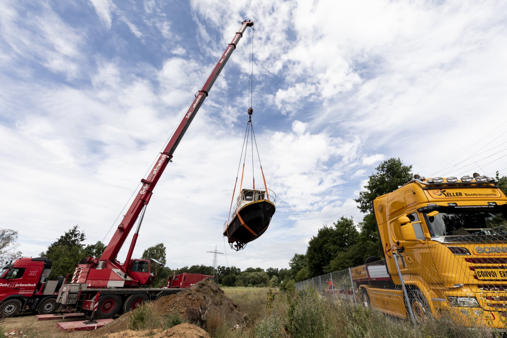 | Dateiinfo (Bild-Unterschrift und Info-Box, automatisch erstellt) | Ein altes Patrouillenboot der dänischen Marine wird beim Kulturgewächshaus angeliefert, 2020 Urheber: J. Kielkowski<br><br>Lizenz: CC BY-SA 3.0 | ||
