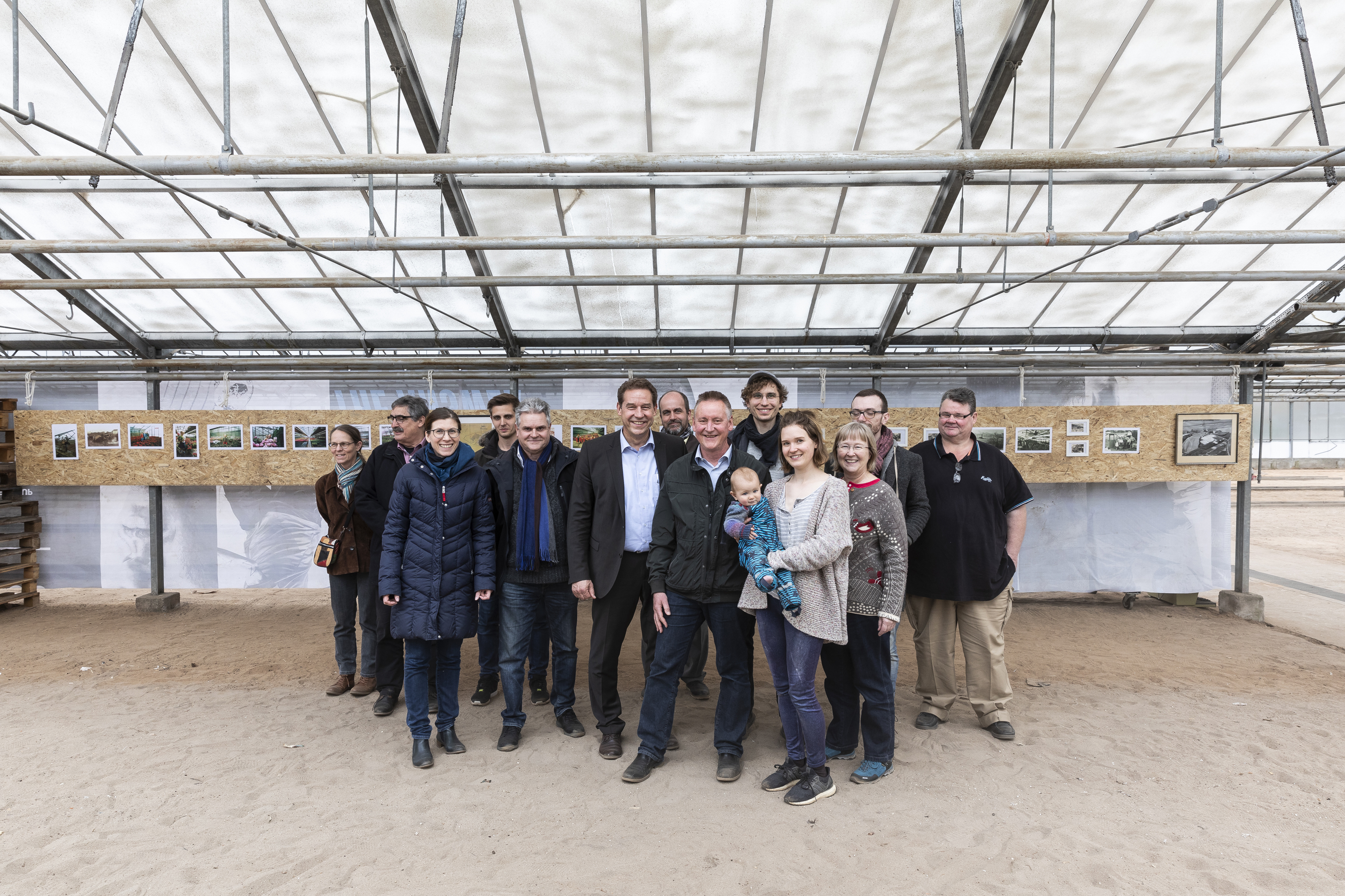| Beschreibung | Thomas Jung, Markus Braun sowie Vertreter von Stadtplanungsamt, Bauordnungsbehörde und Ordnungs-/Umweltamt im Gewächshaus zu Besuch, 2019 | ||