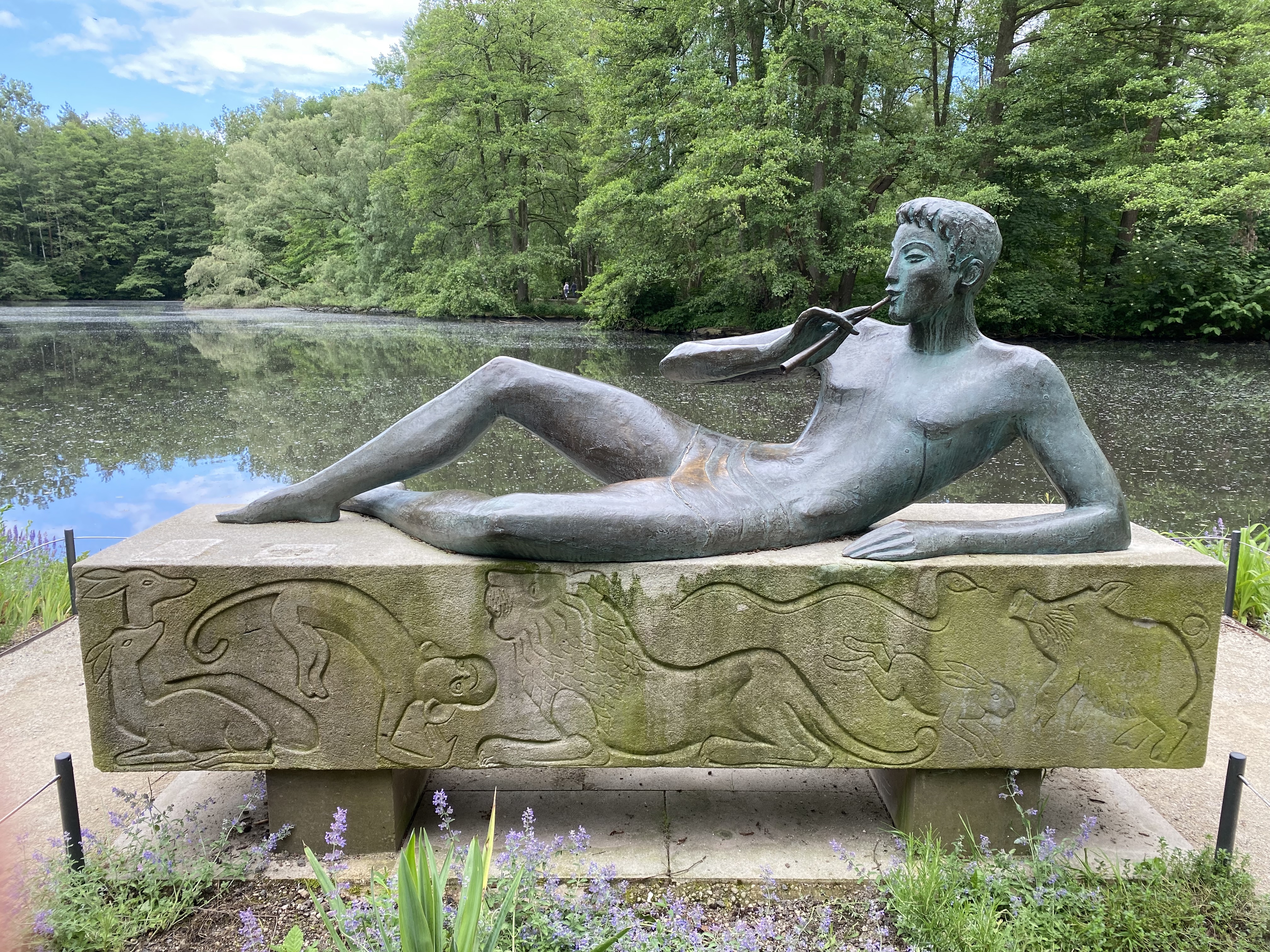 | Beschreibung | Gudrun Kunstmanns Plastik aus Bronze / Kunststein »Der liegende Orpheus/ Ruhender Arion« (1954) an den Weihern im Nürnberger Tiergarten | ||