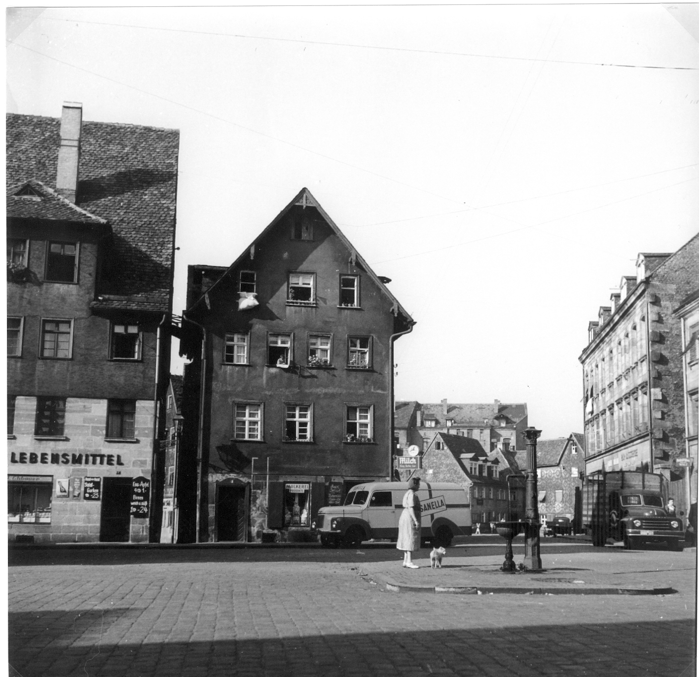 rechte Bildseite: das Viehauto (Viehtransporter) gehörte dem Pferdemetzger Kormann vom Pfisterberg