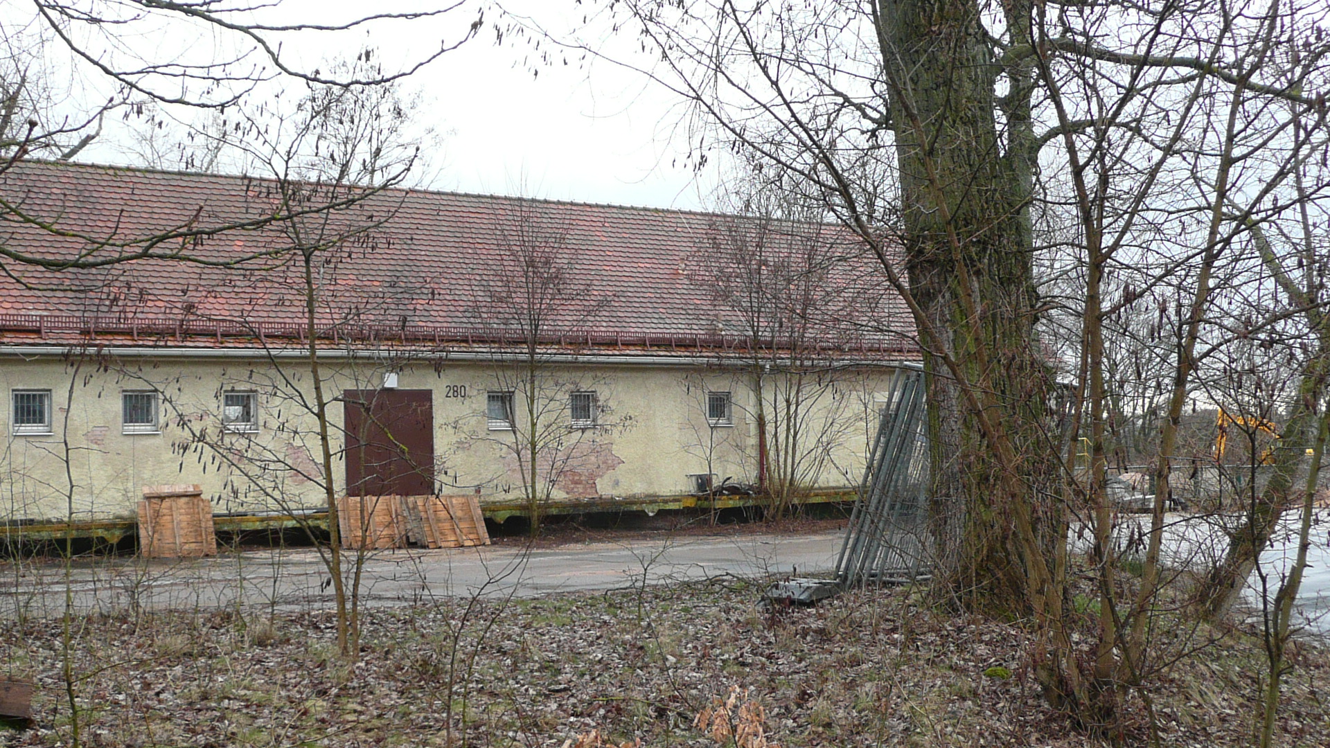 2010: Lagerhaus mit Laderampe Nähe der Flugplatzbahn hinter der Alten Flugwerft an der heutigen Käthe-Brand-Straße