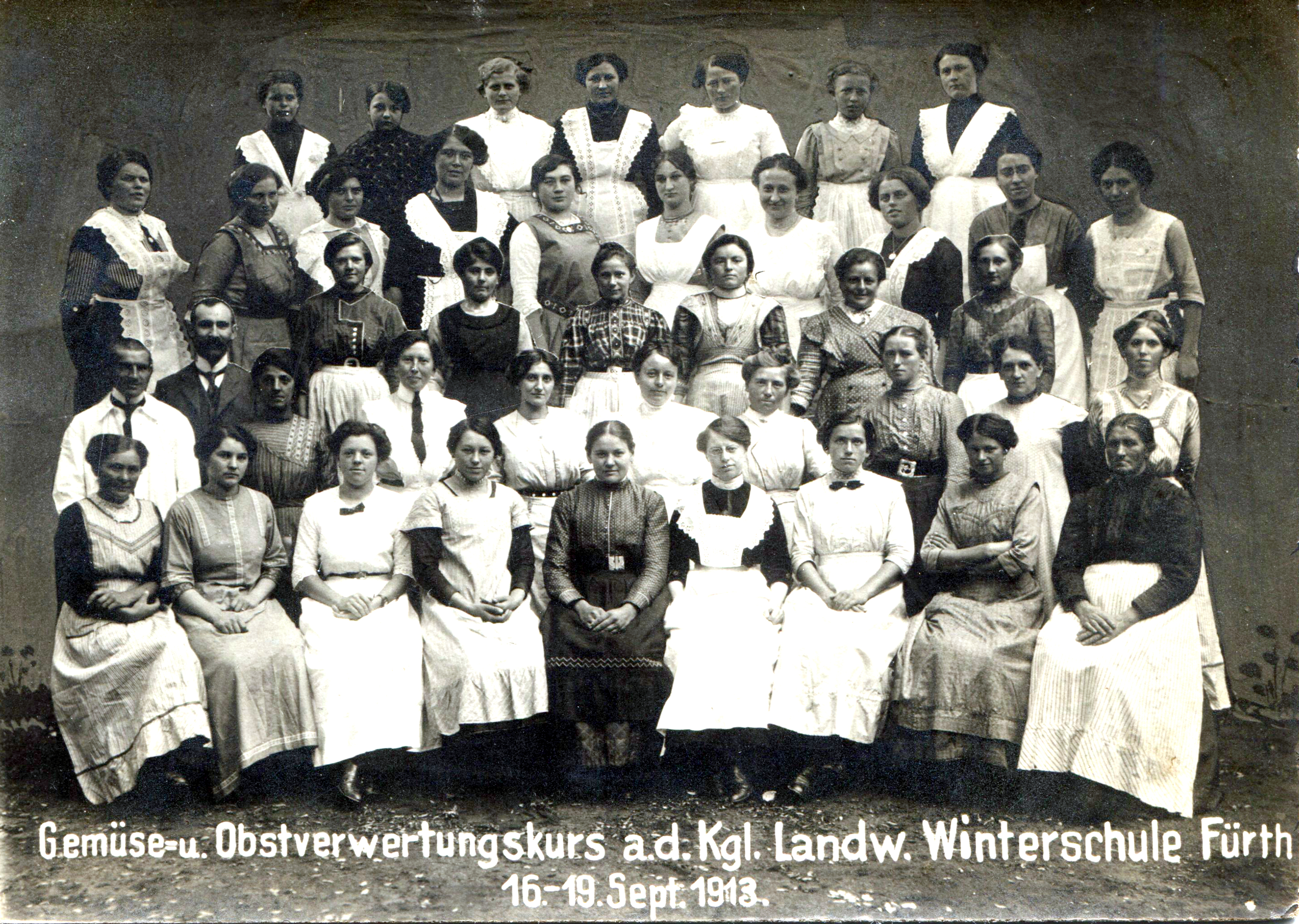 | Beschreibung | Gemüse- und Obstverwertungskurs an der Königlichen Winterschule Fürth, Sept. 1913 | ||