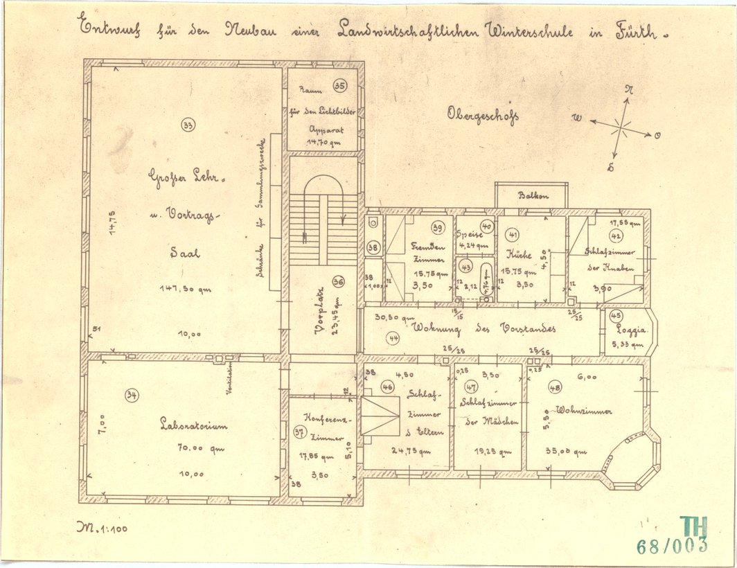 | Beschreibung | Entwurf für die Landwirtschaftliche Winterschule - Grundriss OG | ||