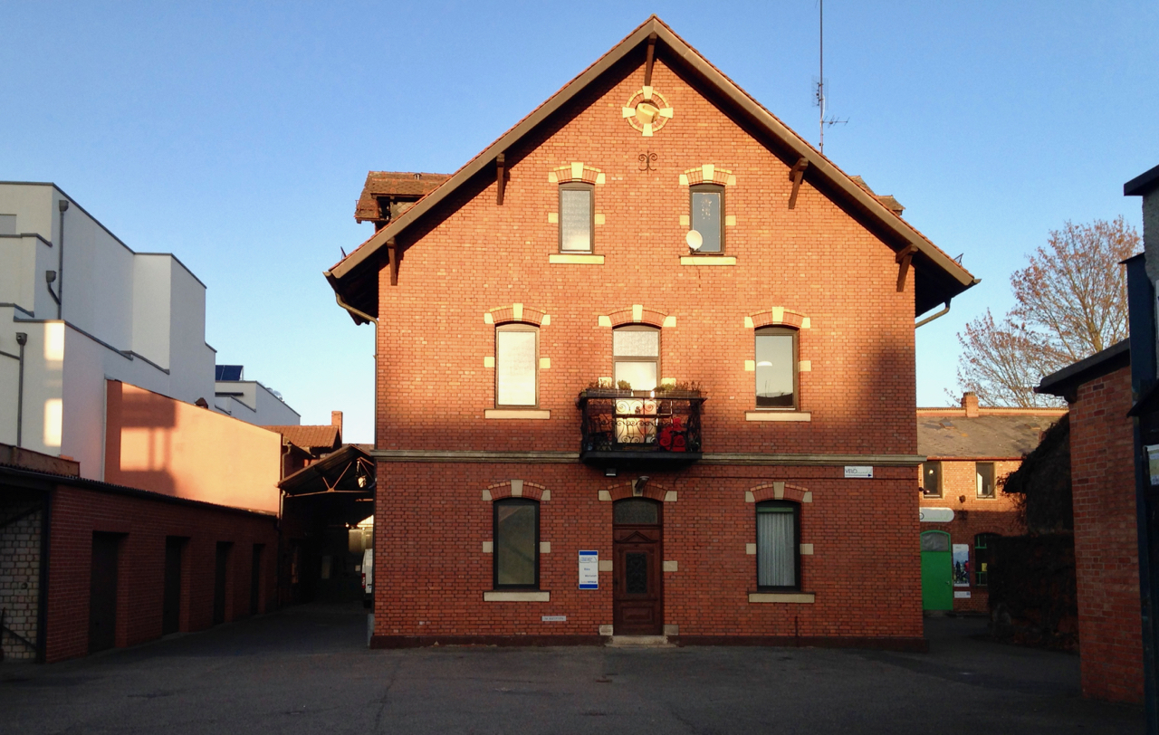 | Beschreibung | Verwaltungsgebäude der ehemaligen Spiegelfabrik J. L. Lehmann - straßenseitige Giebelfront, Zustand Dezember 2016 | ||