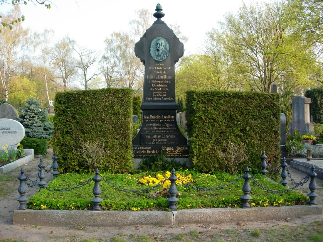 | Beschreibung | Das Grab von Bürgermeister Gg. Friedrich v. Langhans auf dem Fürther Hauptfriedhof, Grabfeld 18, Nr. 11-13 | ||
