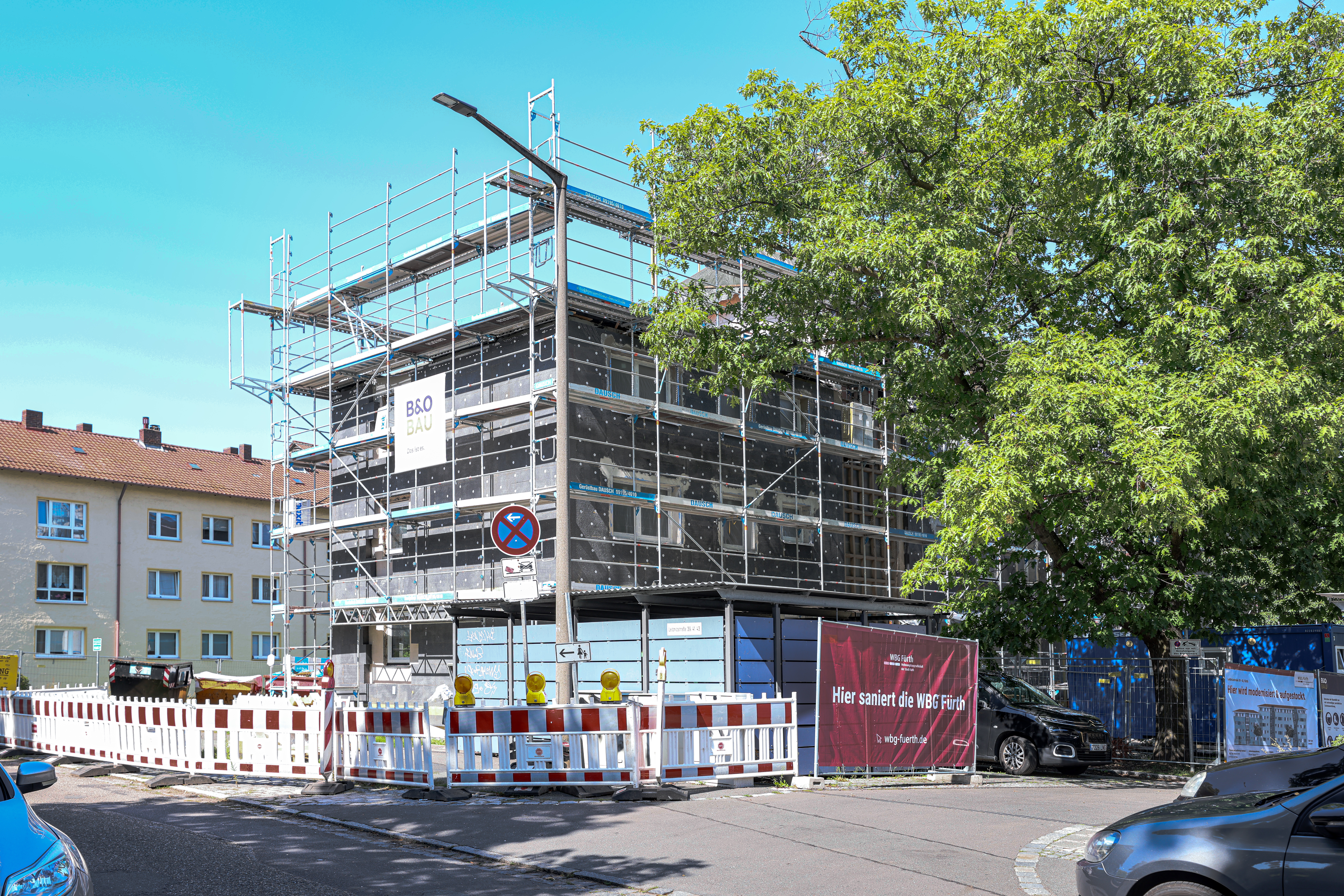 | Beschreibung | Energetische Sanierung und Aufstockung um ein Stockwerk in der Leibnizstraße 39 - 43 durch die WBG Fürth, Aug. 2023 | ||