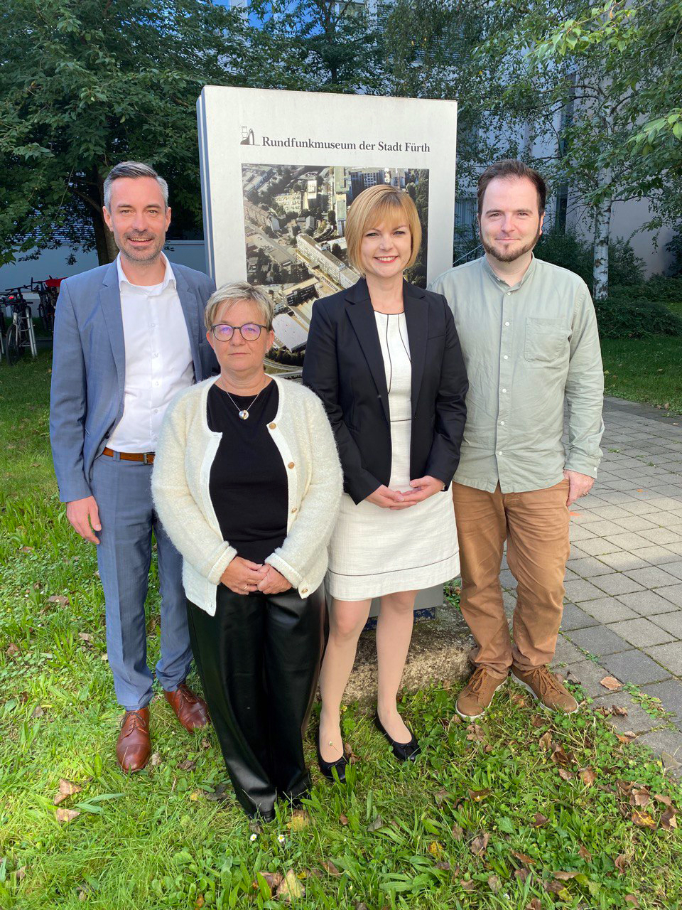 | Beschreibung | Leitungswechsel im Rundfunkmuseum: Karin Heinzler (zweite von links) übernimmt von Jana Stadelbauer die Leitung des Museums. Mit im Bild Dr. Benedikt Döhla (Leiter Referat IV) und Stadtrat Felix Geismann, Sept. 2023 | ||