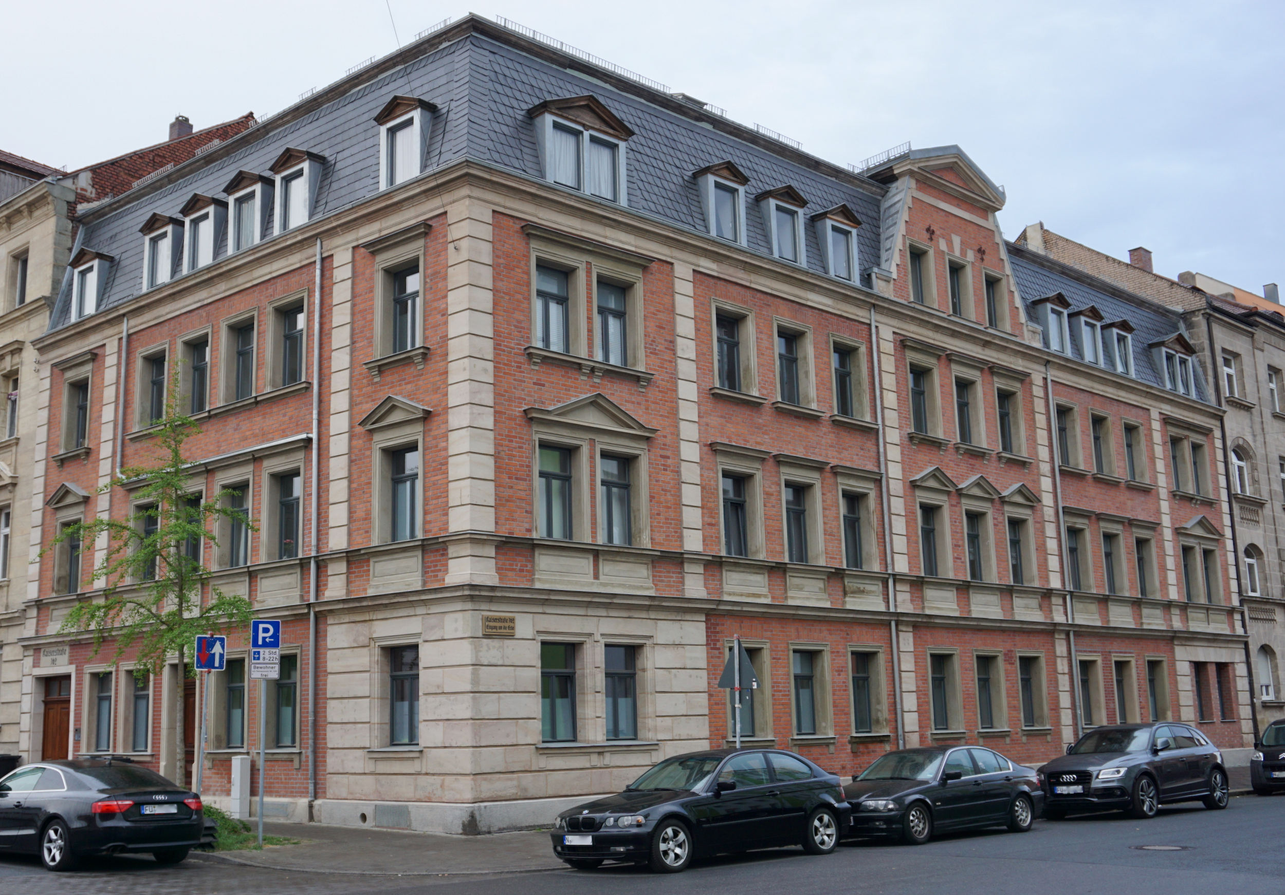 | Beschreibung | Mietshaus in Ecklage Leyher Straße 12 mit gleichartigem Mietshaus Kaiserstraße 162, April 2020 | ||