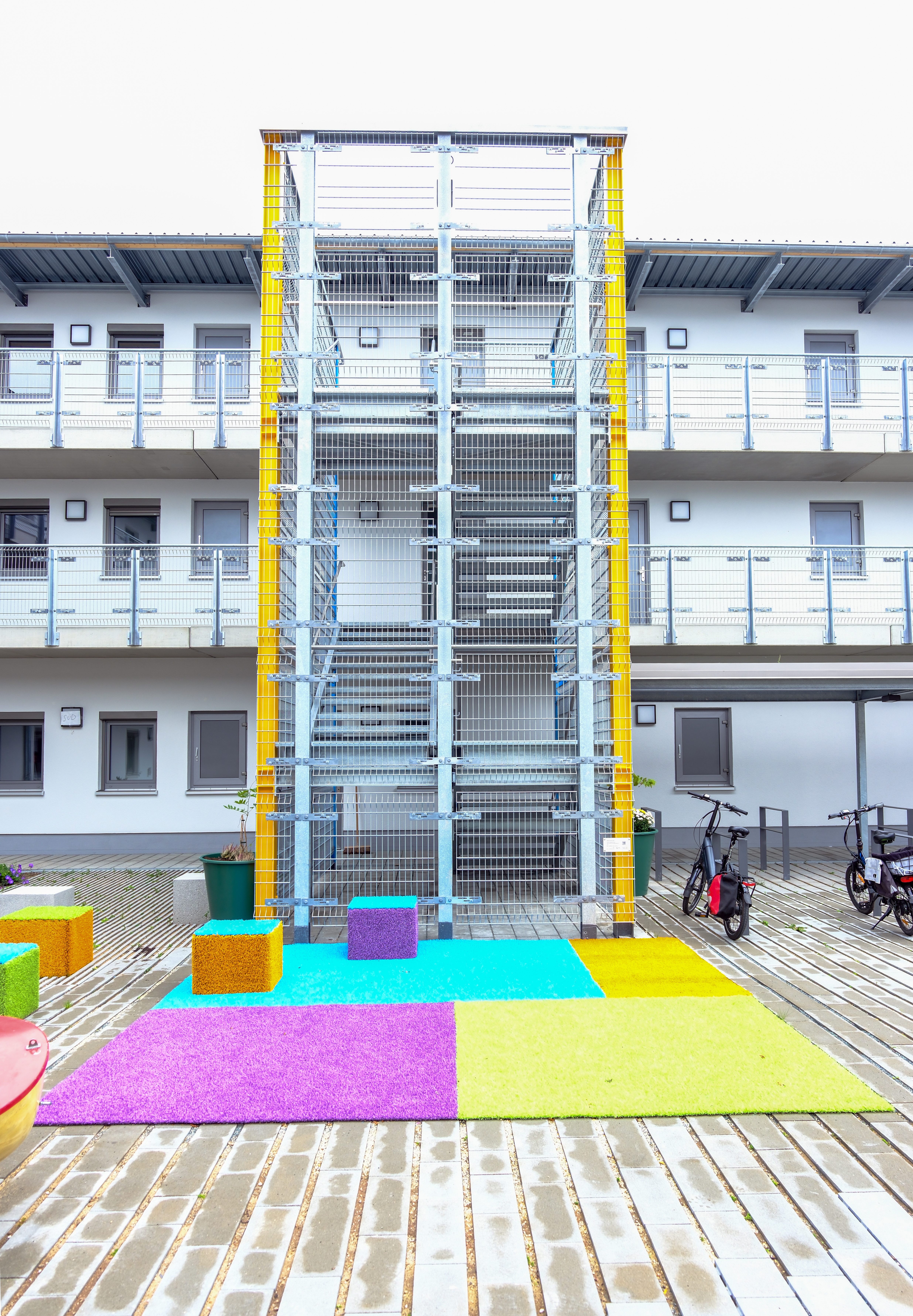| Beschreibung | Das neue Obdachlosenheim in der Leyher Straße - Kunst im Innenhof des Obdachlosenheims von Barbara Engelhard, Okt. 2025 | ||