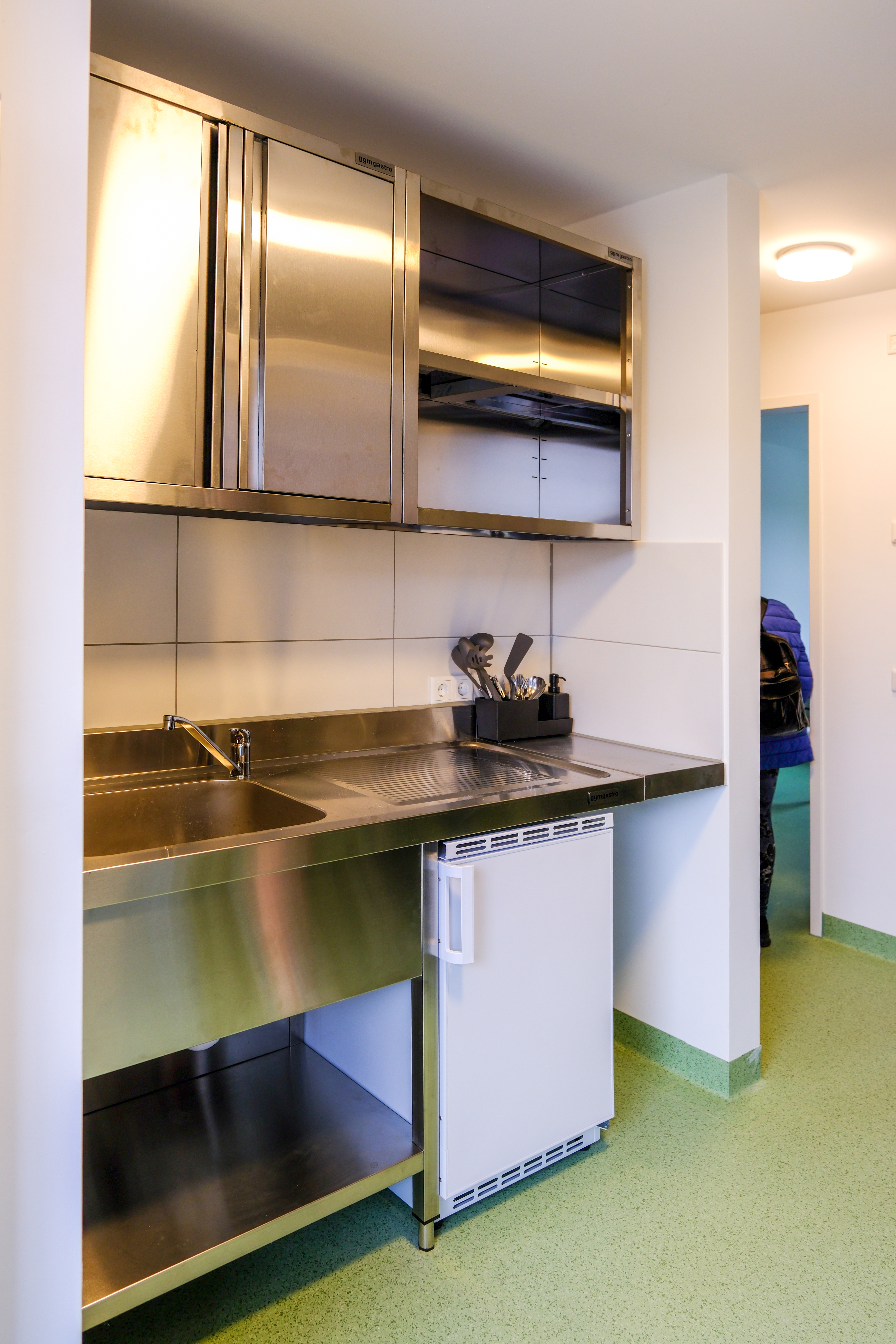 | Dateiinfo (Bild-Unterschrift und Info-Box, automatisch erstellt) | Das neue Obdachlosenheim in der Leyher Straße - Küche für zwei Zimmer im Obdachlosenheim, Okt. 2025 Urheber: Kamran Salimi<br><br>Lizenz: CC BY-SA 4.0 | ||