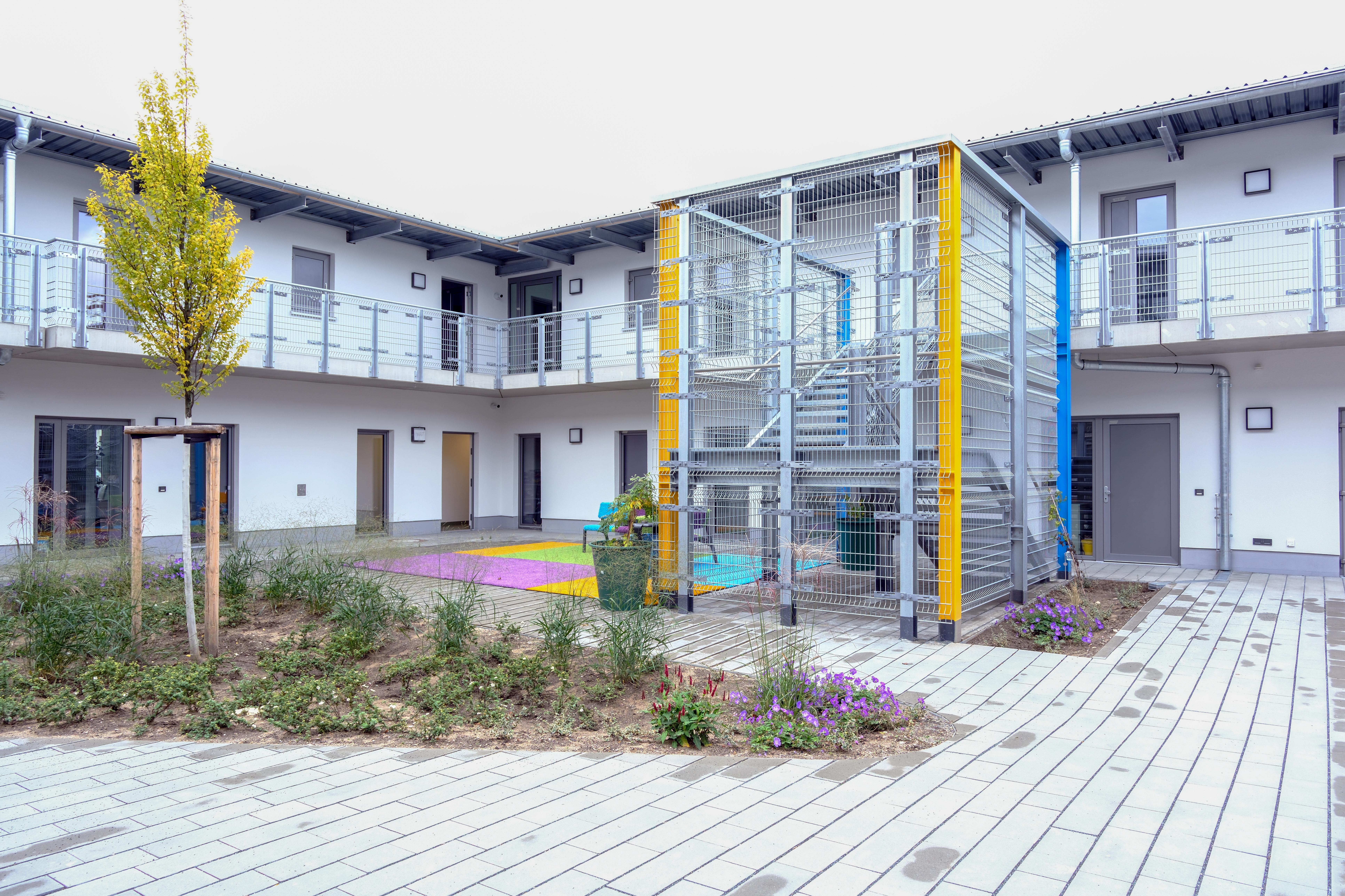 | Beschreibung | Das neue Obdachlosenheim in der Leyher Straße - Innenhof des Obdachlosenheims, Okt. 2025 | ||