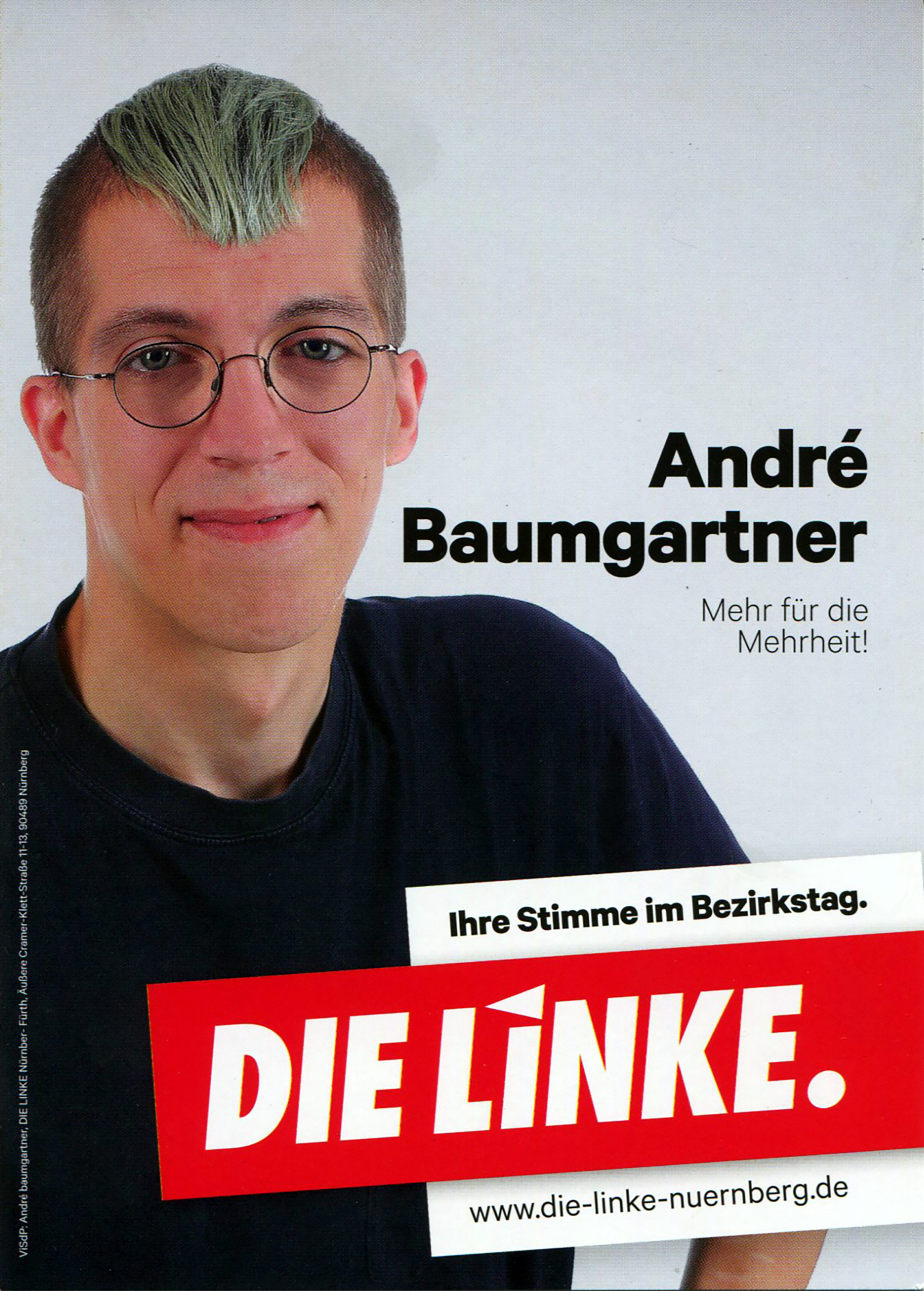 | Dateiinfo (Bild-Unterschrift und Info-Box, automatisch erstellt) | Linke-Wahlkampfflyer von Andre Baumgartner zur Bezirkstagswahl 2018 Urheber: Die Linke Fürth<br><br>Lizenz: CC BY-SA 3.0 | ||