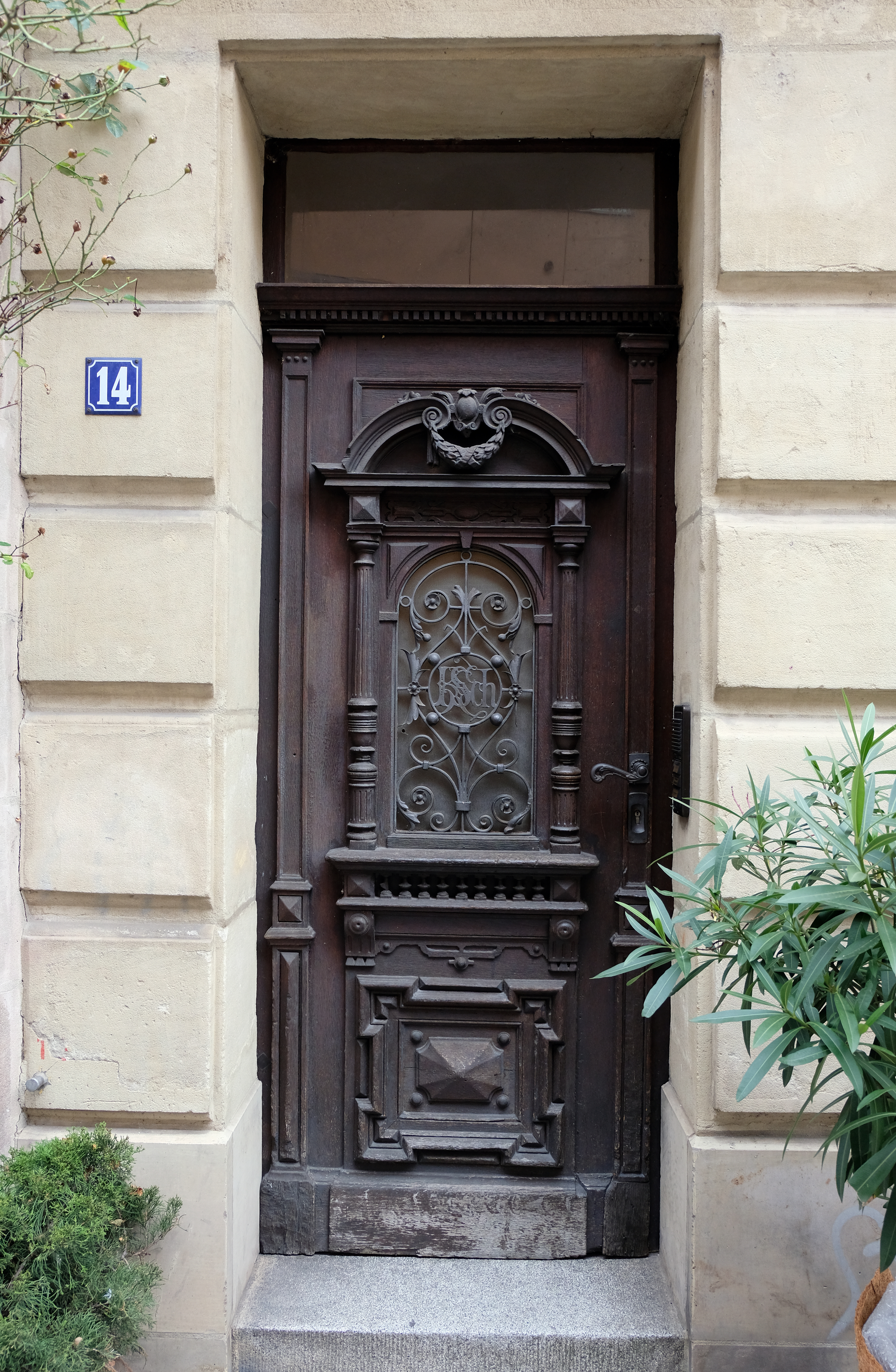 | Beschreibung | Eingangstür zur Ludwig-Erhard-Straße 14 mit den Initialen des ehem. Bäckermeisters K. Schröppel, Dez. 2020 | ||