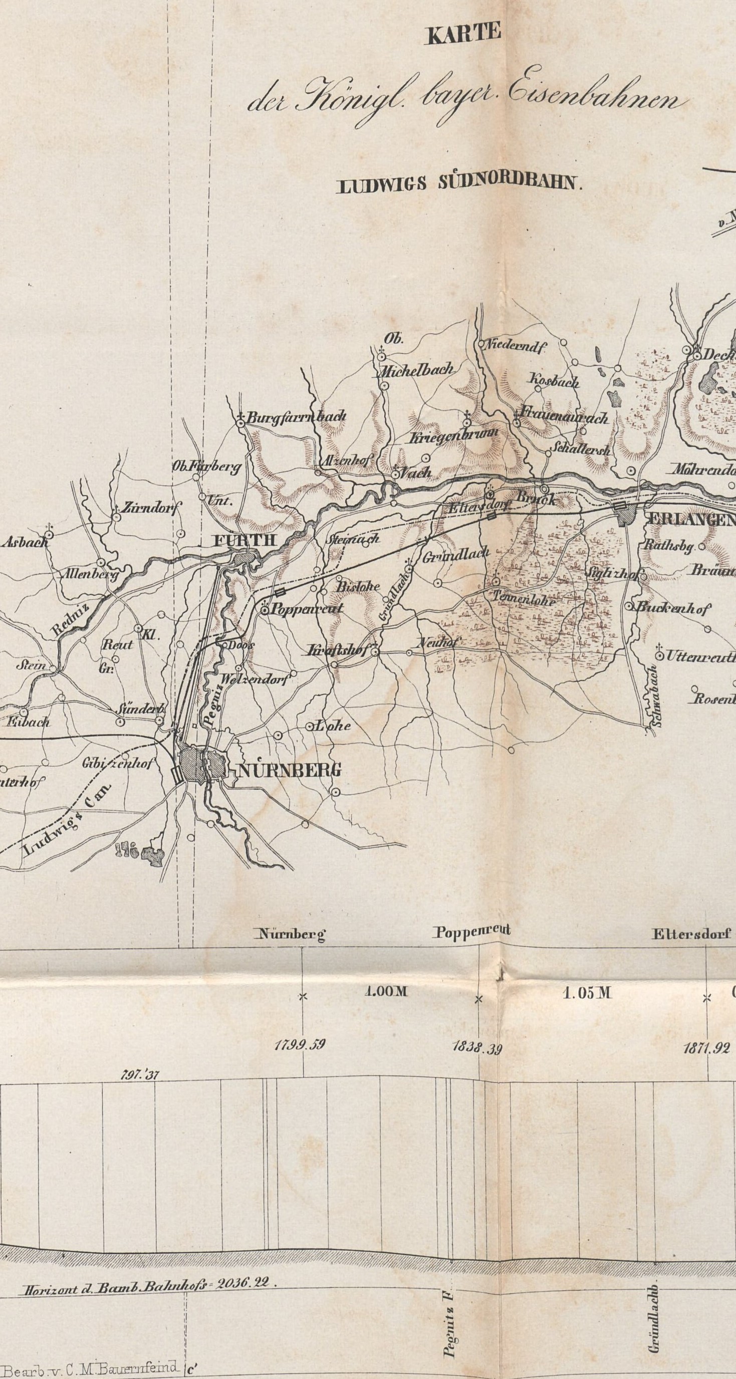 | Quellangaben | C. M. Bauernfeind: Situations- und Nivellements-Karten der K. Bayerischen Staats-Eisenbahnen von München bis Hof: nebst Notizen über deren Geschichte, Technik und Betrieb, Nürnberg 1845 - online-Digitalisat der Bayerischen Staatsbibliothek | ||