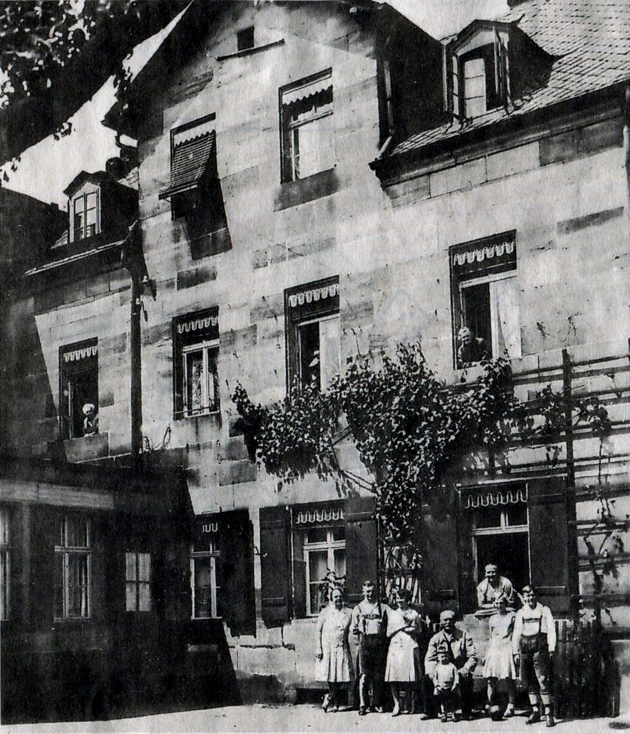 | Beschreibung | Ludwigstraße 24 um 1930 - auf der Rückseite steht: Karls Geburtshaus (Karl Trost, 2. v. l.) | ||