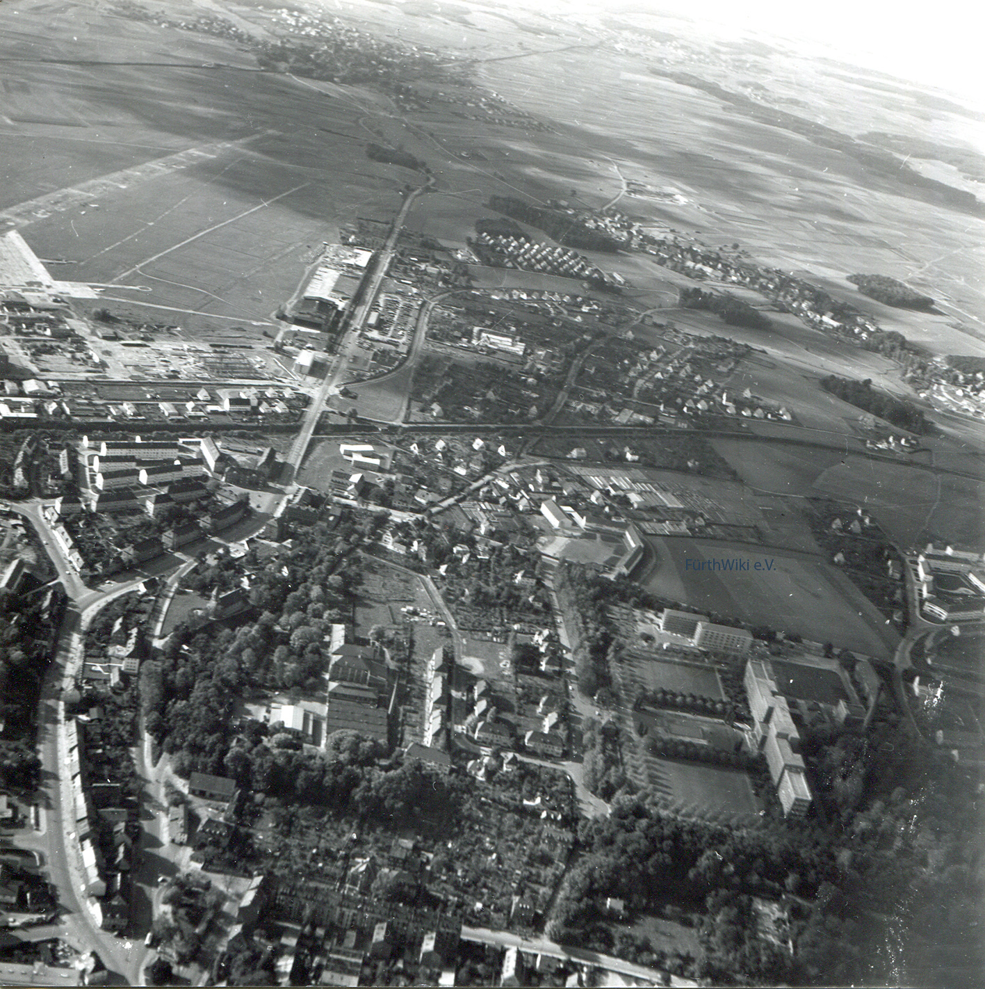 | Datei:Luftbild Fürth West 1955 S1447 Bergbräu Klinikum Flughafen.jpg | |||