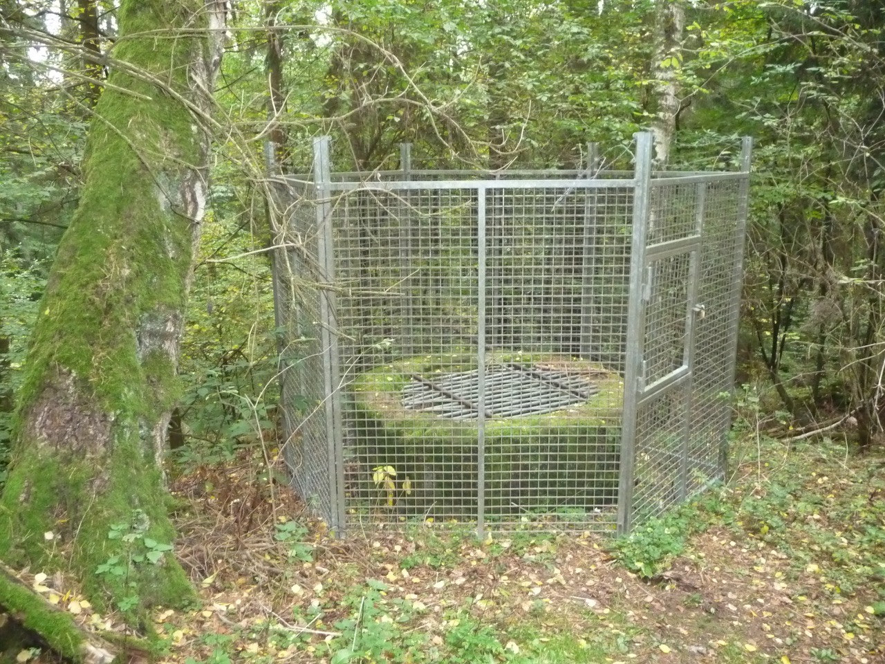 Belüftungsschacht des Felsenkellers Burgfarrnbach mit Schutzzaun