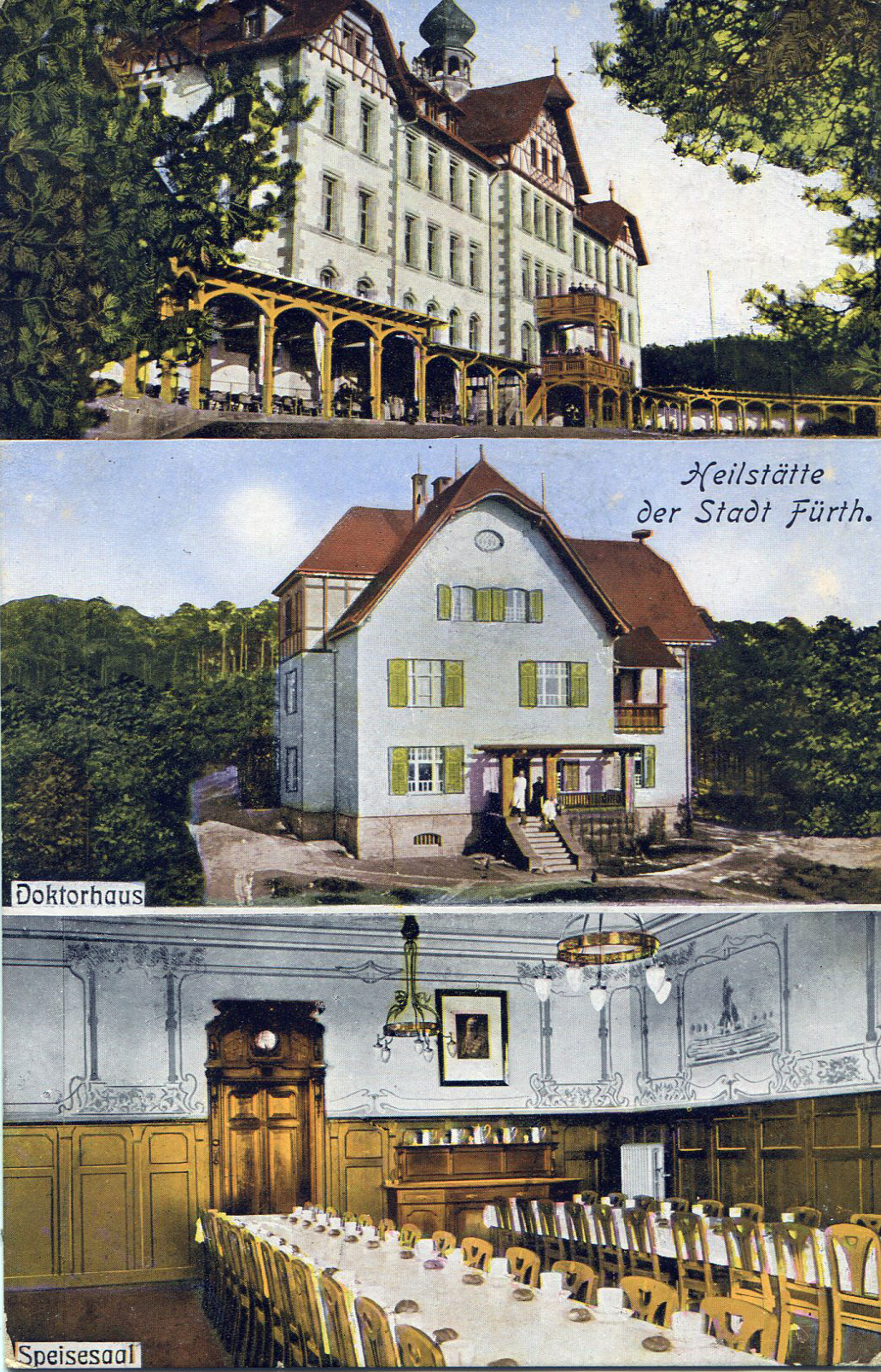 | Beschreibung | Kolorierte alte Ansichtskarte von der Lungenheilanstalt, gel. 1912 | ||