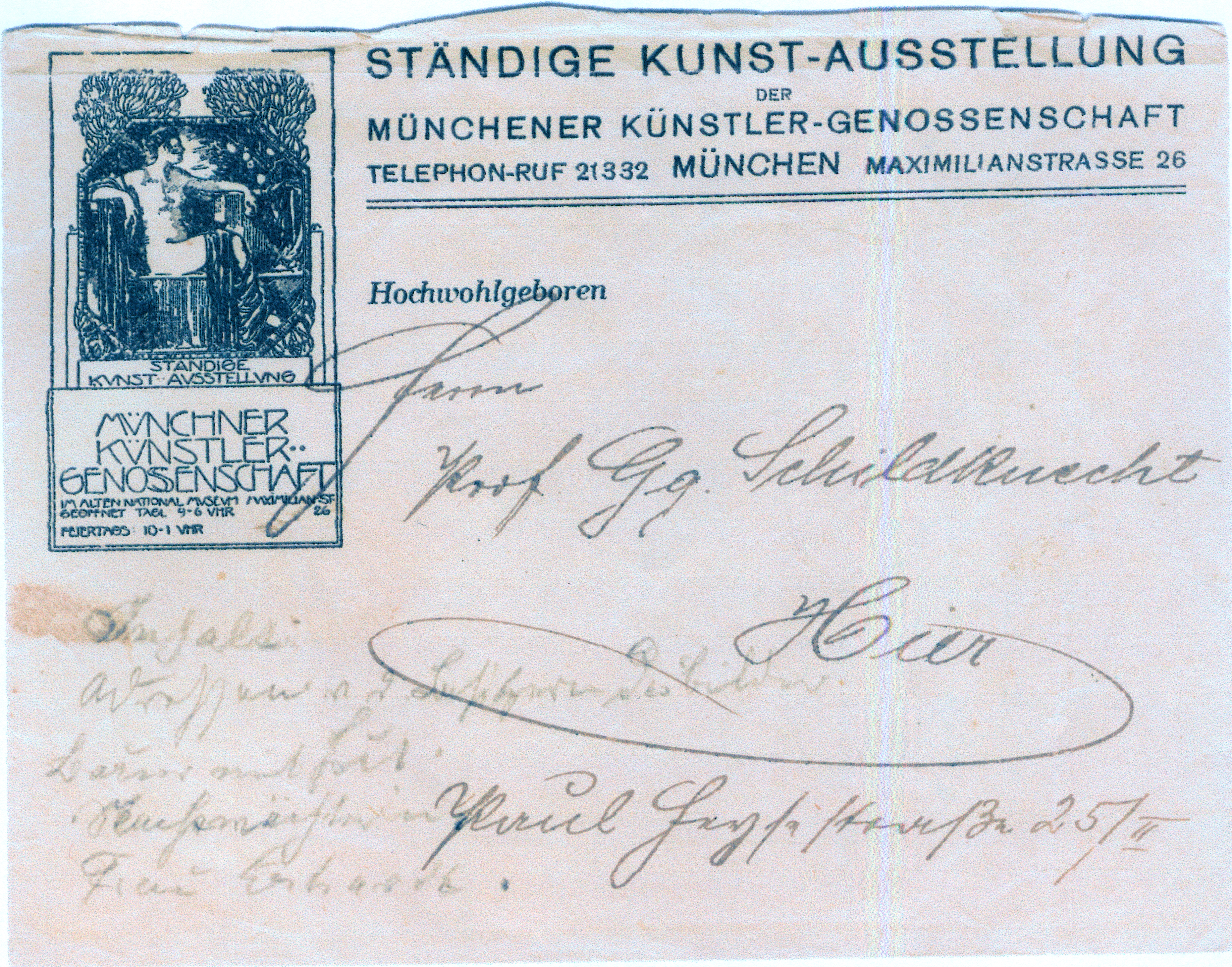 | Beschreibung | Münchener Künstlergenossenschaft an G. Schildknecht | ||