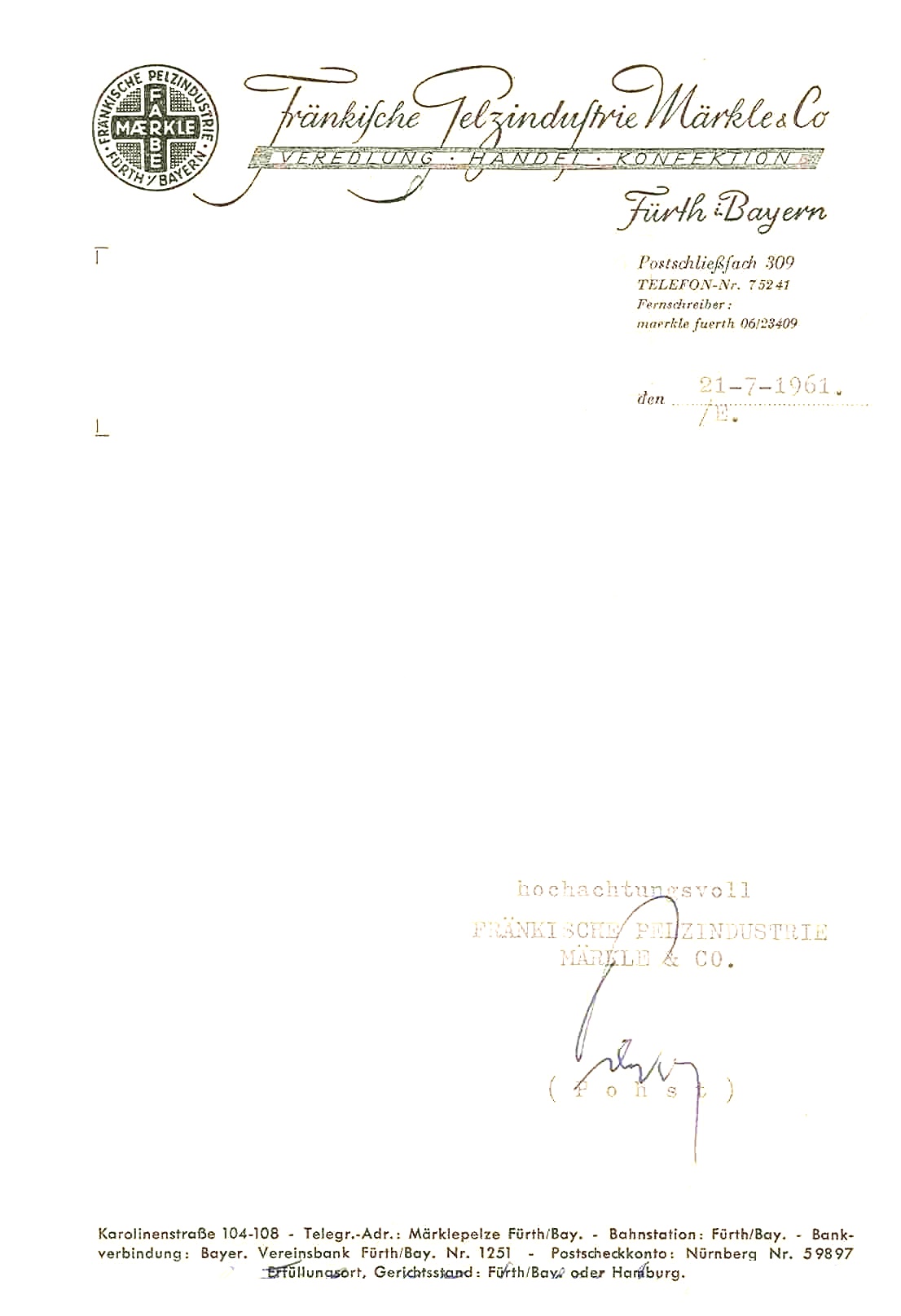 | Unternehmen | Fränkische Pelzindustrie Märkle & Co. | ||