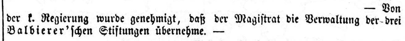 | Beschreibung | Magistrat übernimmt Verwaltung der Balbierer-Stiftungen, Fürther Tagblatt 26.6.1874 | ||