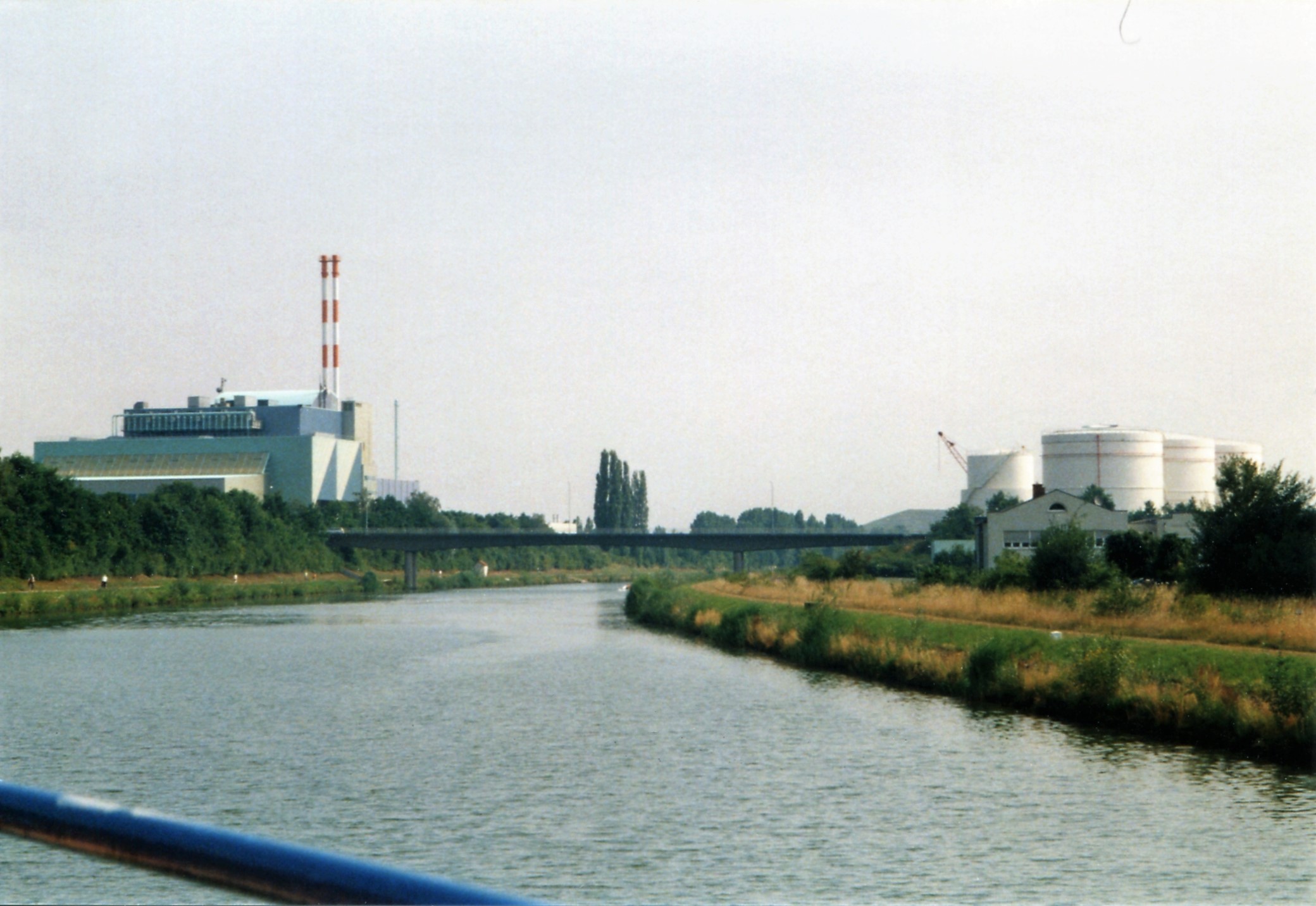 | Beschreibung | 2001: Blick vom Main-Donau-Kanal Richtung der 2018 abgerissenen Müll-Schwelbrennanlage, der Hafenbrücke und dem Tanklager Hafen Fürth. Im Hintergrund die Kräne vom Hafen Fürth und dem Solarberg. | ||