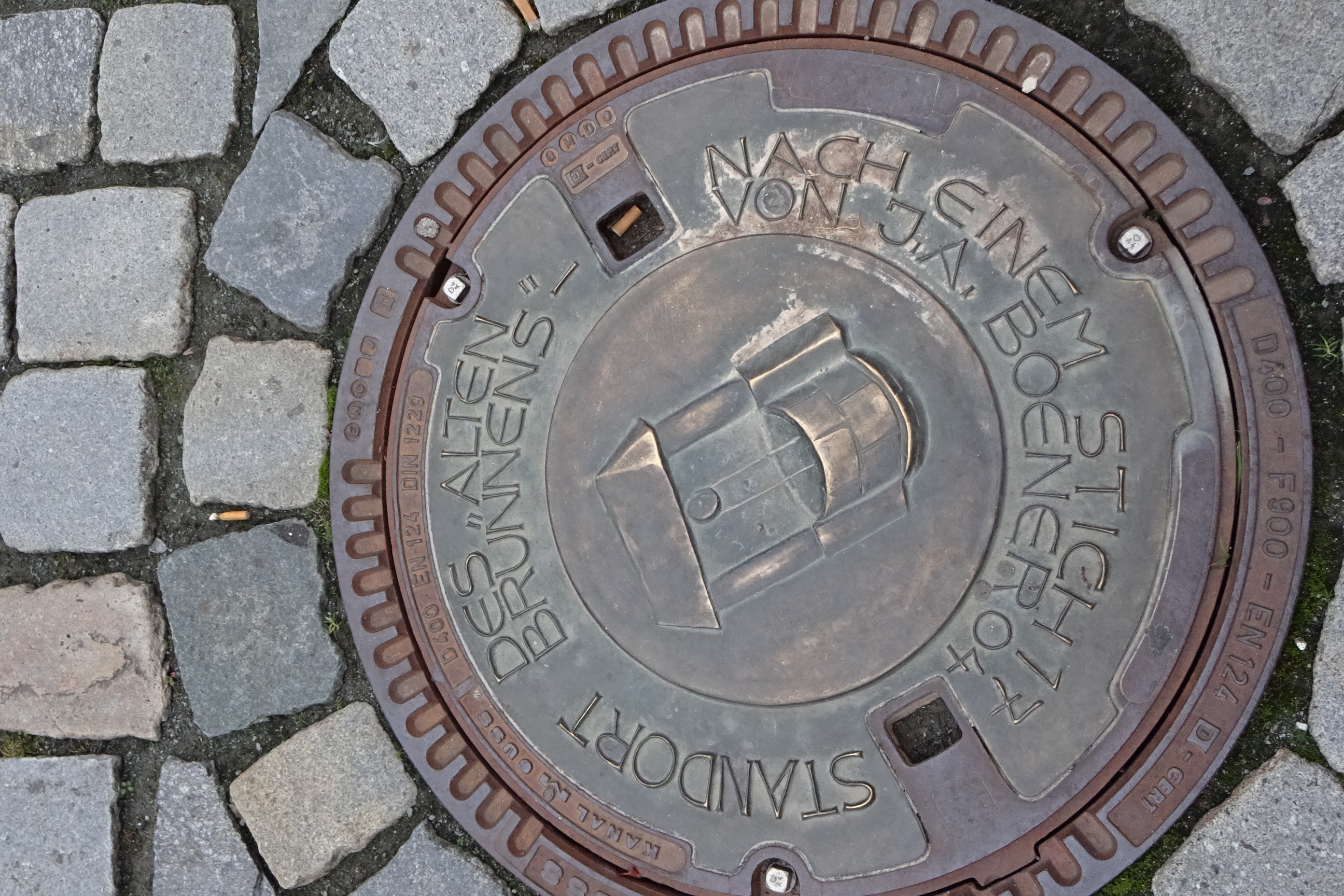 | Beschreibung | Markierungsplatte vom Standort des Alten Brunnens am Marktplatz an der Königstraße nach einem Stich von J. A. Boener von 1704. | ||