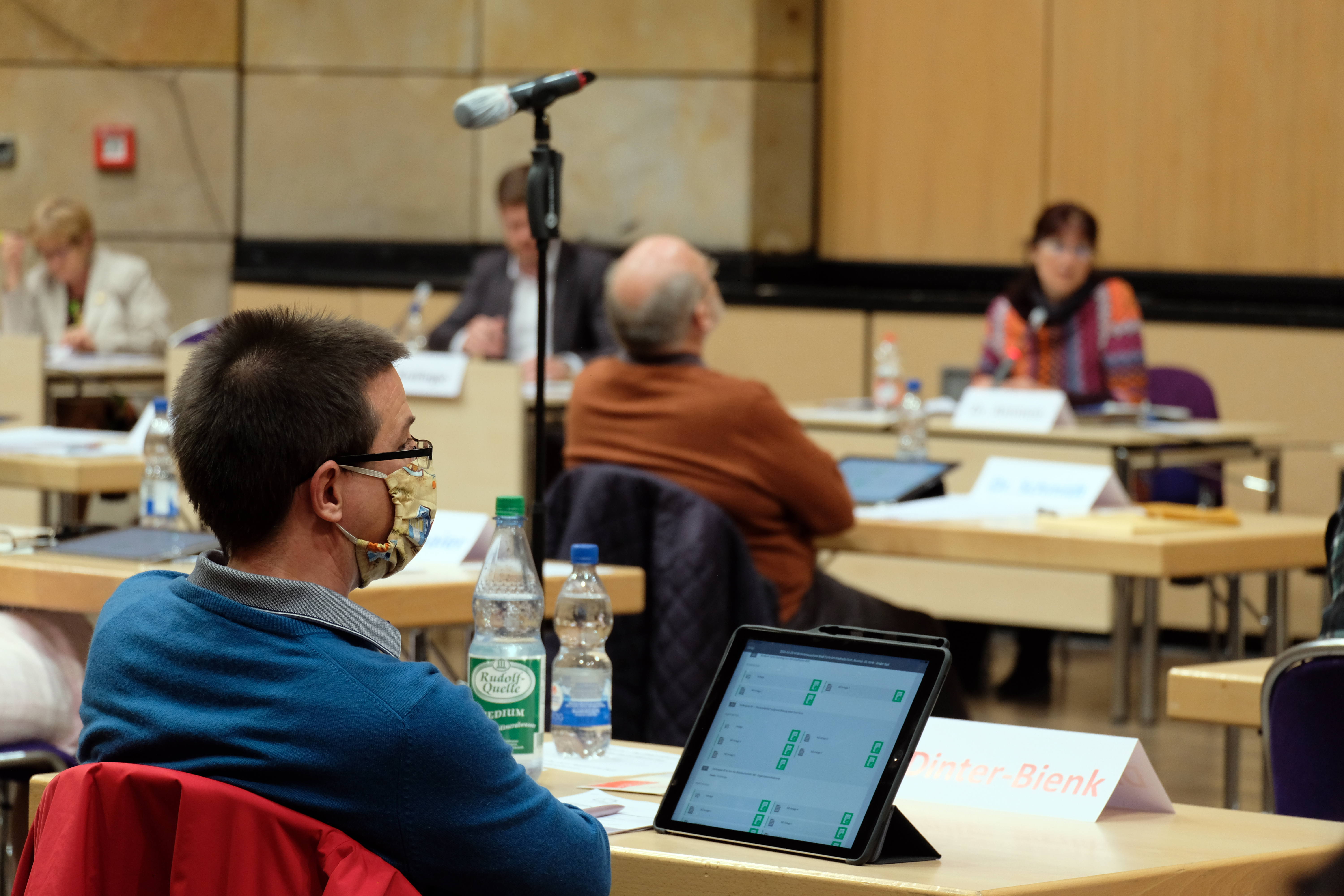 | Dateiinfo (Bild-Unterschrift und Info-Box, automatisch erstellt) | Der sog. Ferienausschuss während der COVID-19-Pandemie im Stadtrat, April 2020 Urheber: Kamran Salimi<br><br>Lizenz: CC BY-SA 3.0 | ||