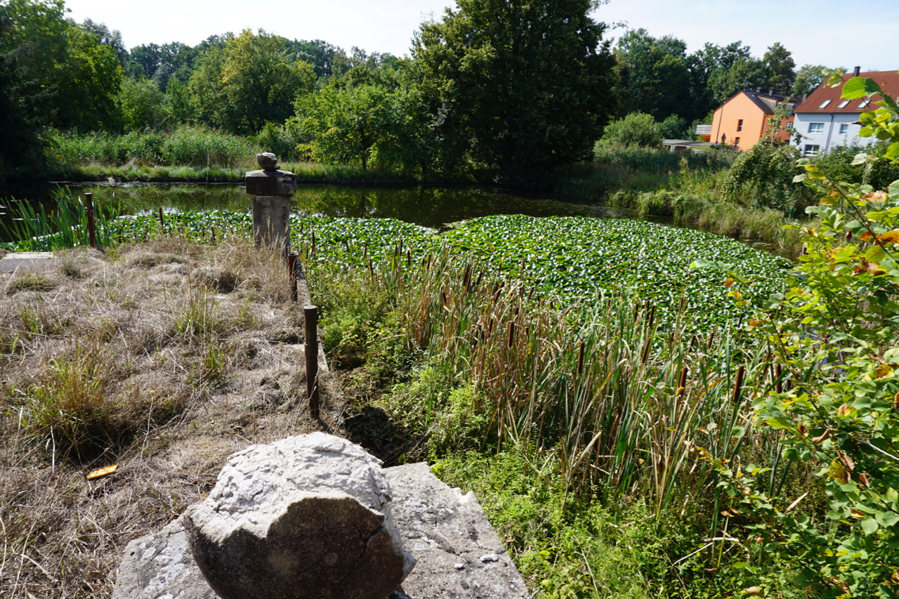 Eisweiher in Burgfarrnbach mit Quellfassung der Martinsquelle; Foto: Aquilex vom 09.09.2018