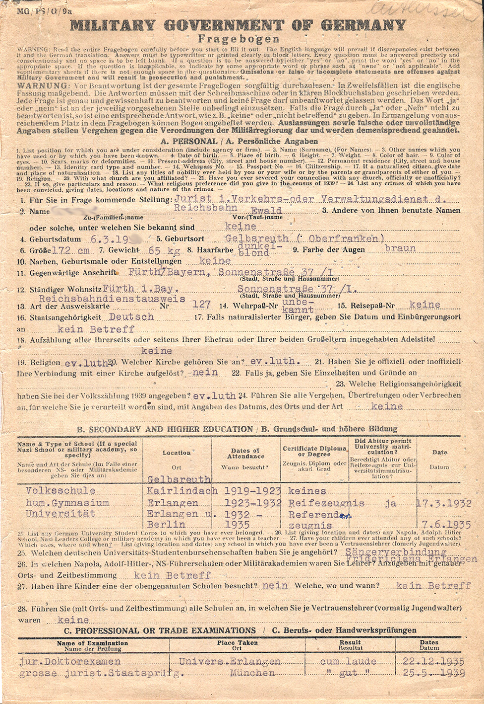| Datei:Meldebogen Entnazifizierung Fürth 1945.jpg | |||