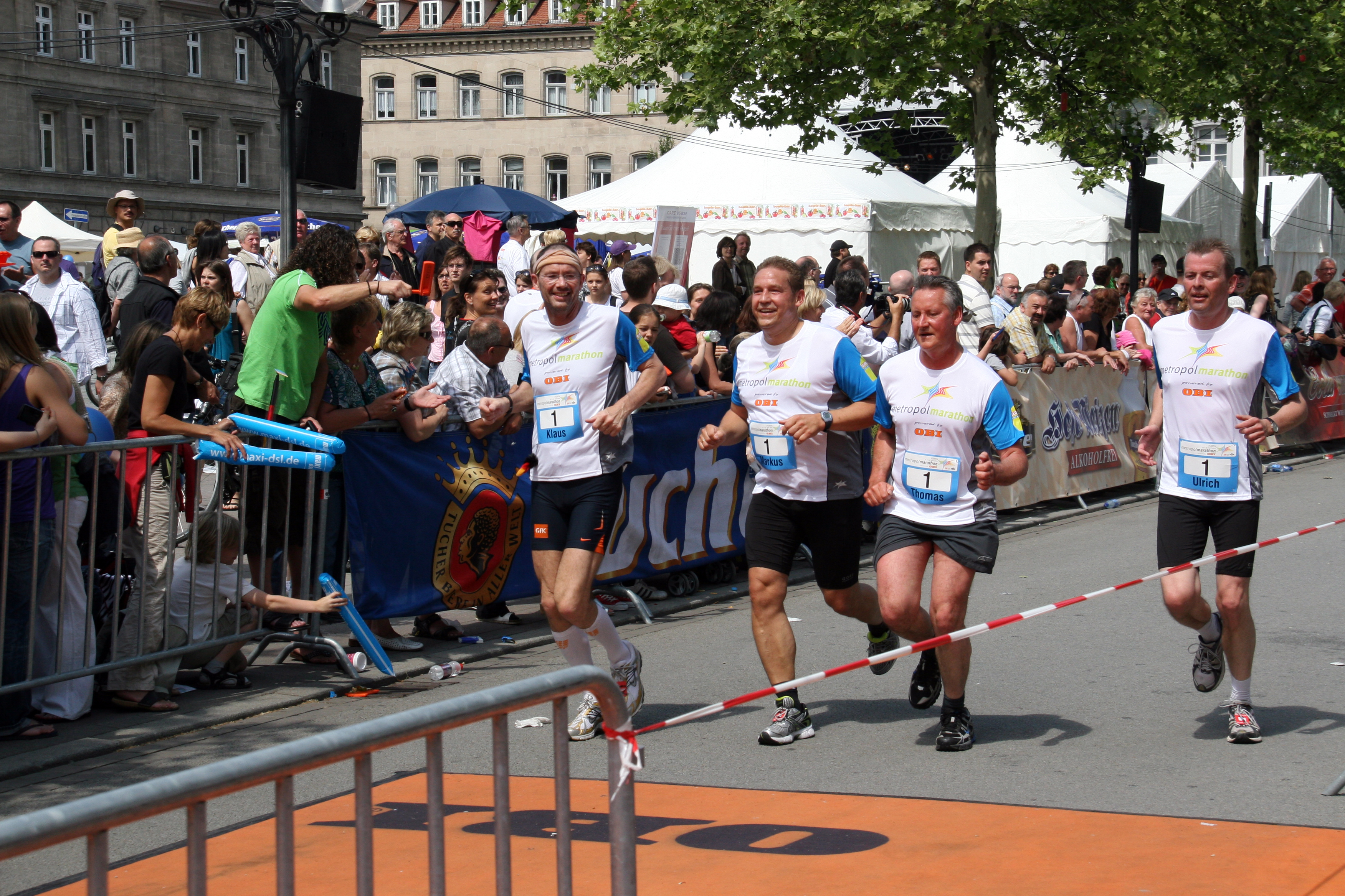 Zieleinlauf den Oberbürgermeistern Thomas Jung (Fürth) und Ulrich Maly (Nürnberg) am ... Zieleinlauf den Oberbürgermeistern Thomas Jung (Fürth) und Ulrich Maly (Nürnberg) am Metropolmarathon - mit dabei Bürgermeister Braun und ehem. GfK-Chef Klaus Wübbenhorst, Juni 2013<br>Urheber: Kamran Salimi<br><br>Lizenz: CC BY-SA 3.0