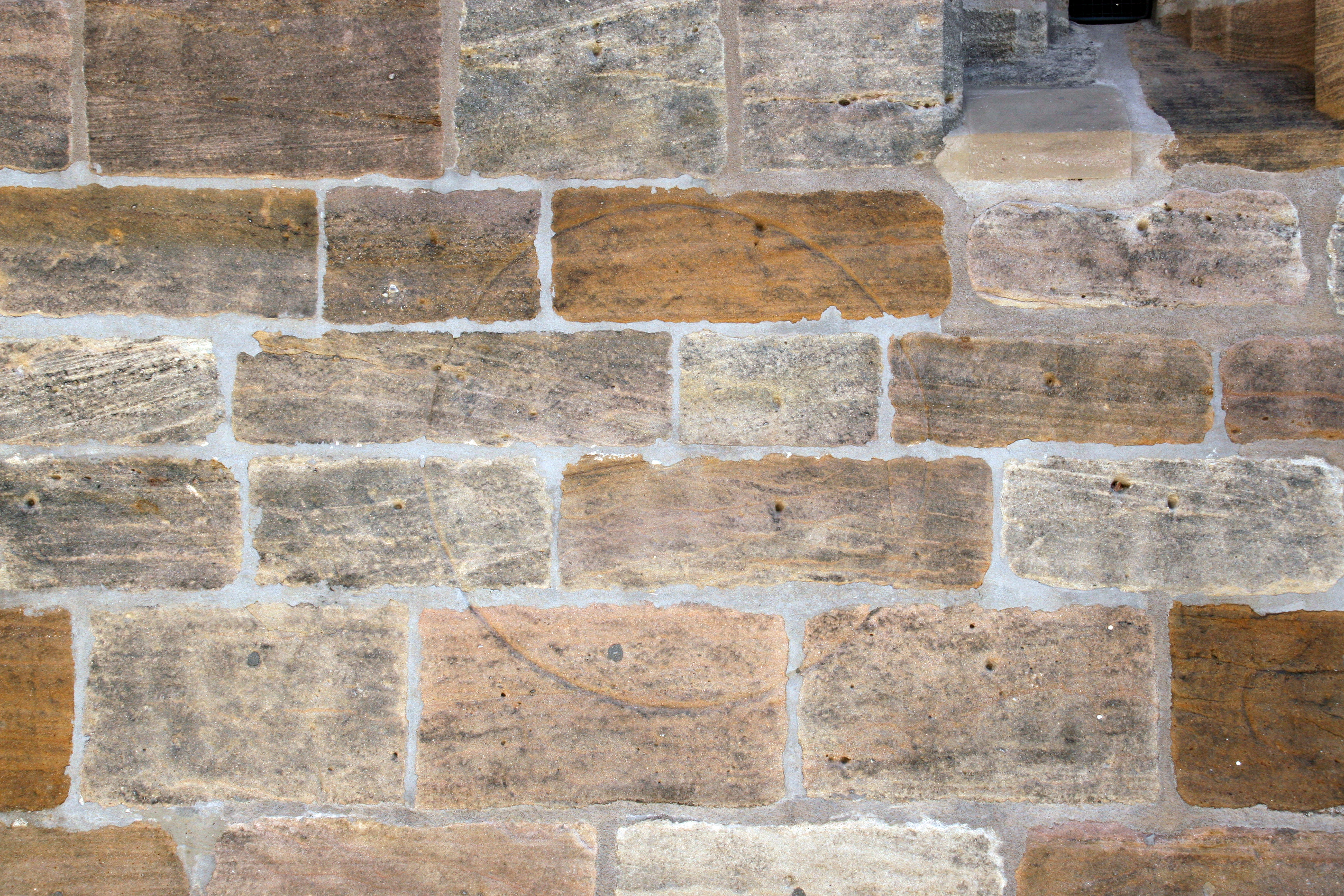 | Beschreibung | Vermeintlicher "Bauschlüssel" (=Kreis) an der Fassade rechts neben dem West-Portal, 2017 | ||