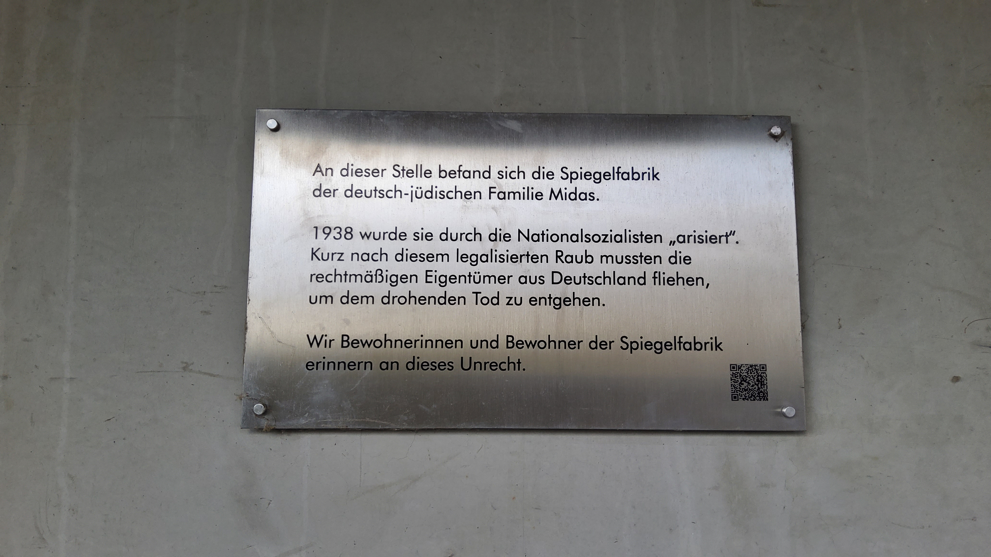 | Urheber | Mahntafel am Wohngebäude der ehem. Spiegelfabrik | ||