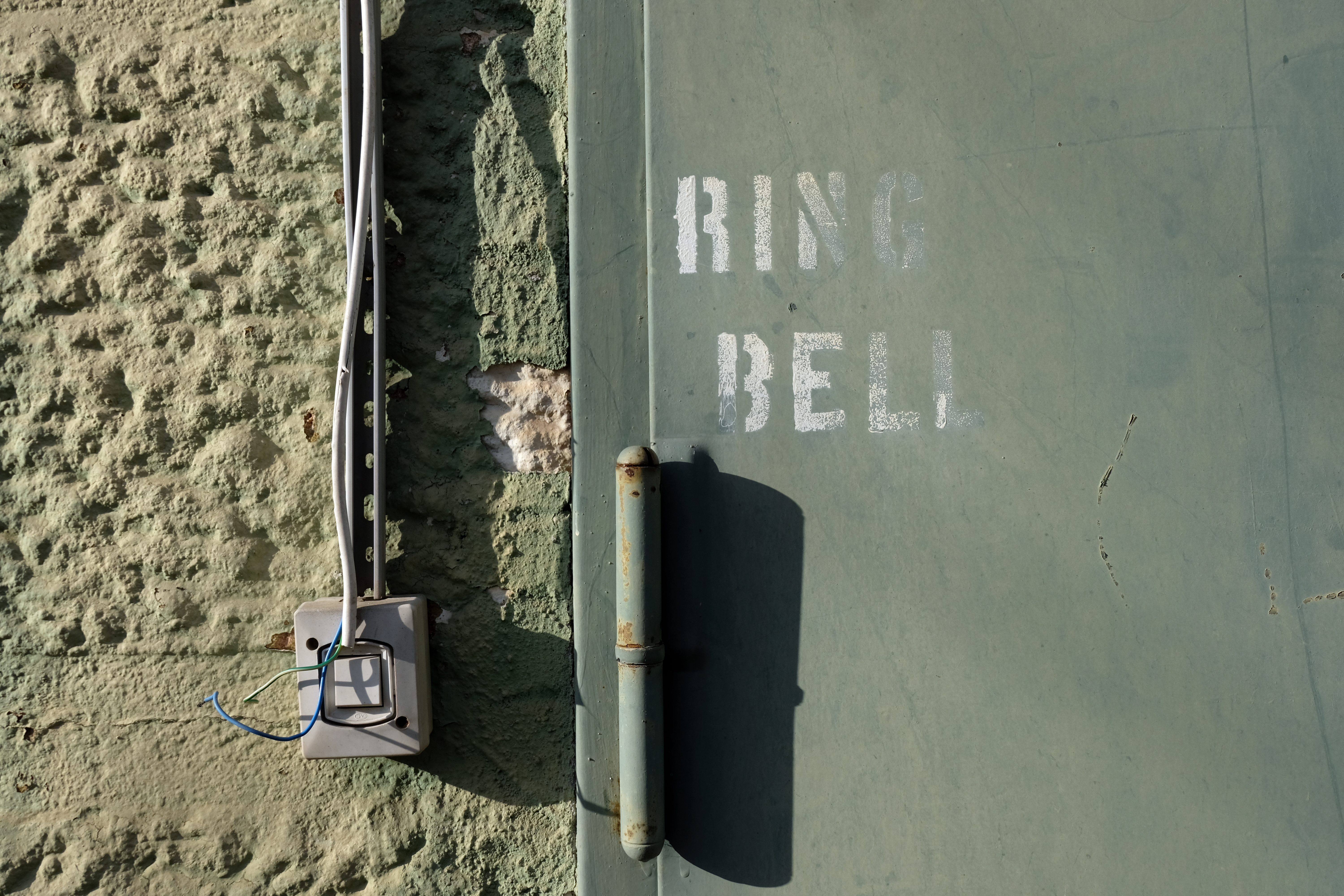 | Beschreibung | Beschriftung "Ring Bell" (Bitte klingeln) noch von den ehem. U.S. Army-Truppen an einem Lagergebäude, Jan. 2021 | ||