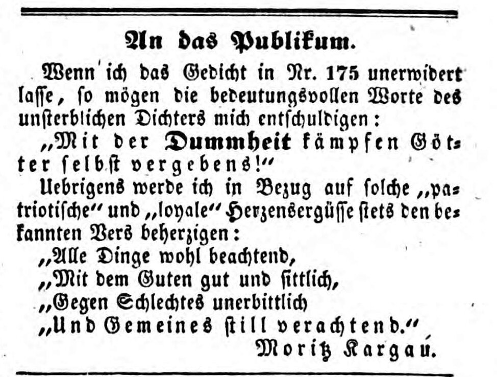 | Beschreibung | Replik Moritz Kargau, Fürther Tagblatt, 24. Juli 1851 | ||