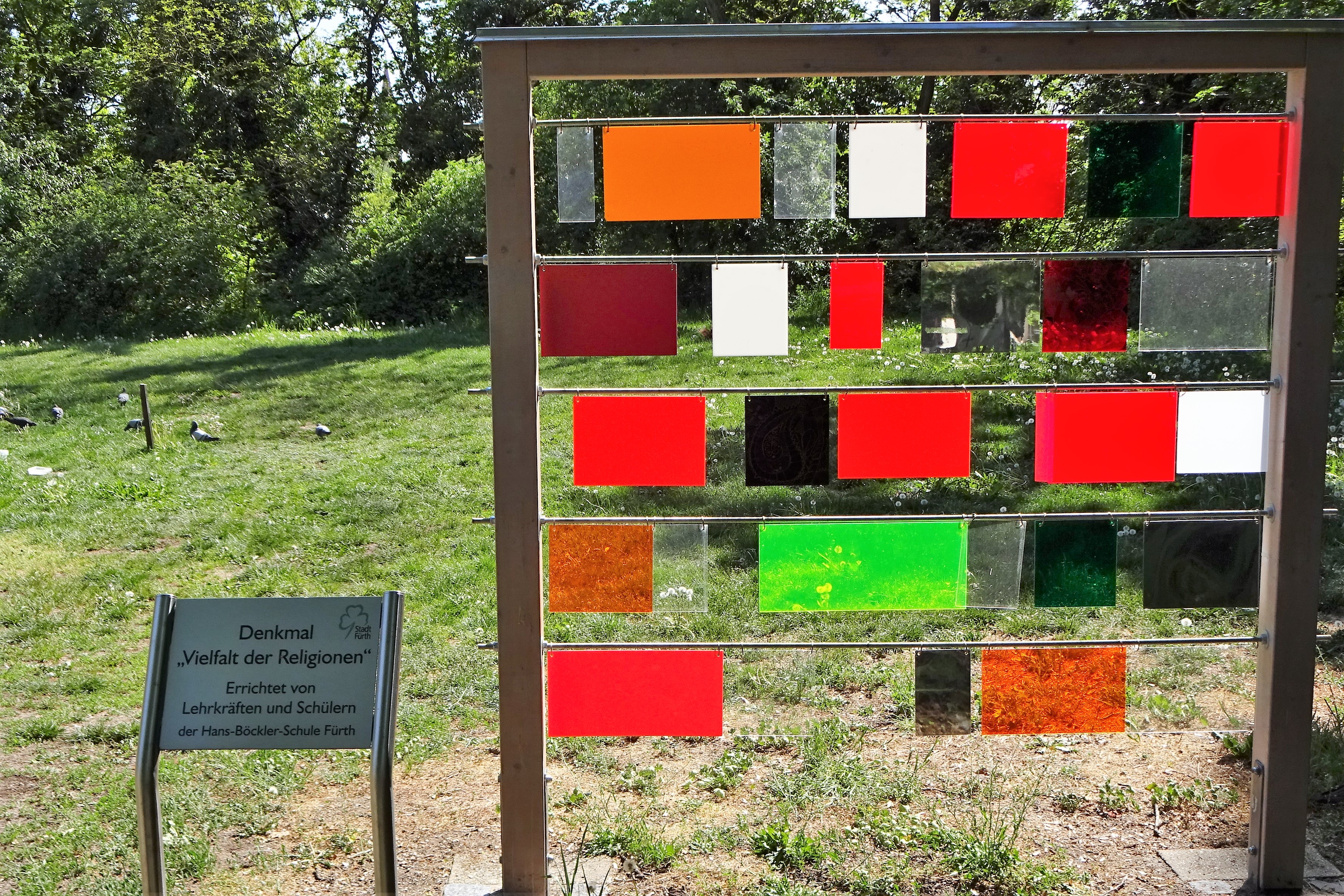 Muslimisches Grabfeld im Mai 2020 Städtischer Friedhof mit dem Denkmal für "Vielfalt der Religionen" errichtet von Lehrkräften und Schülern der Hans-Böckler-Schule