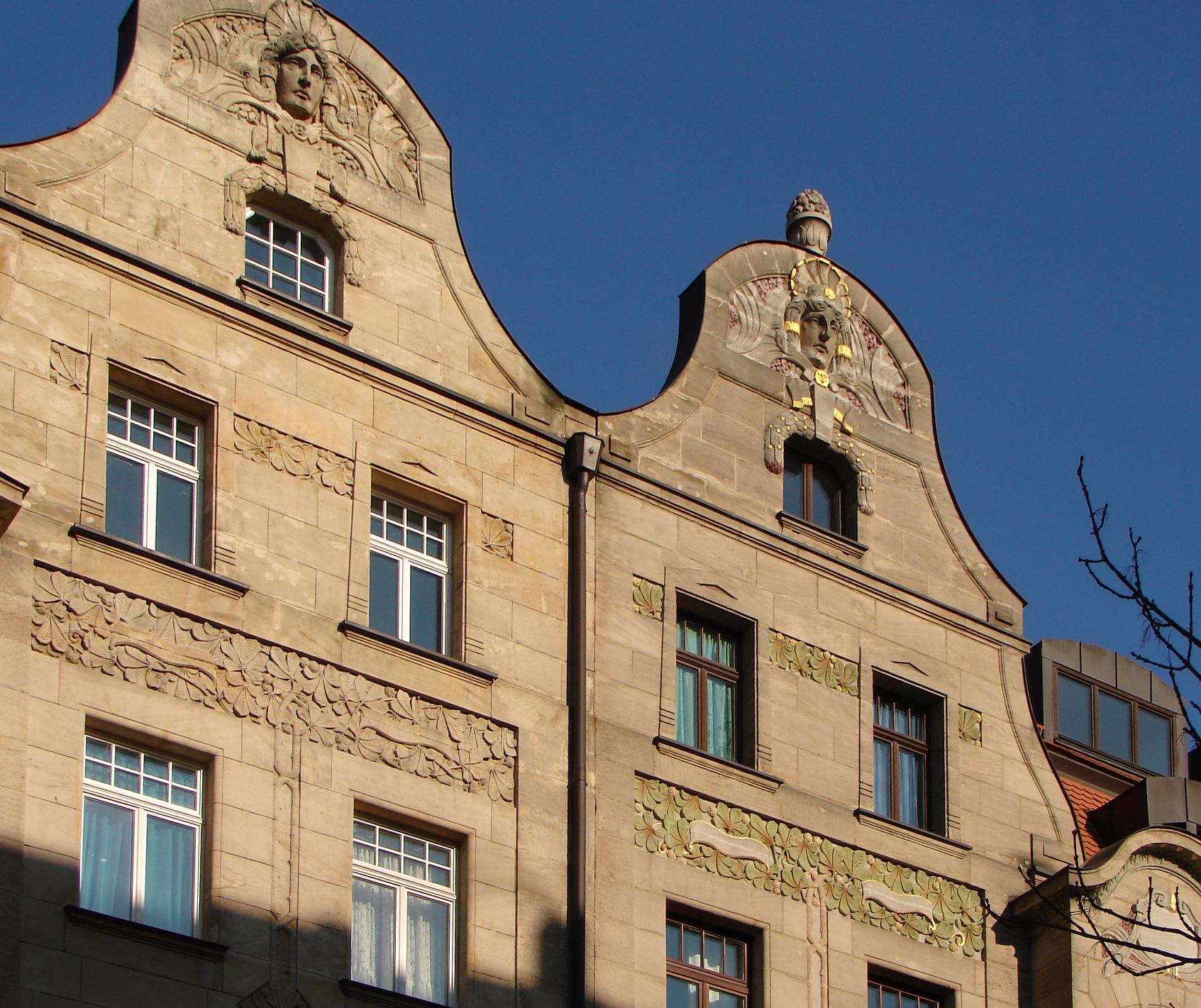 | Beschreibung | Giebelfront der Zwillingshäuser, Nürnberger Straße 83/85. | ||