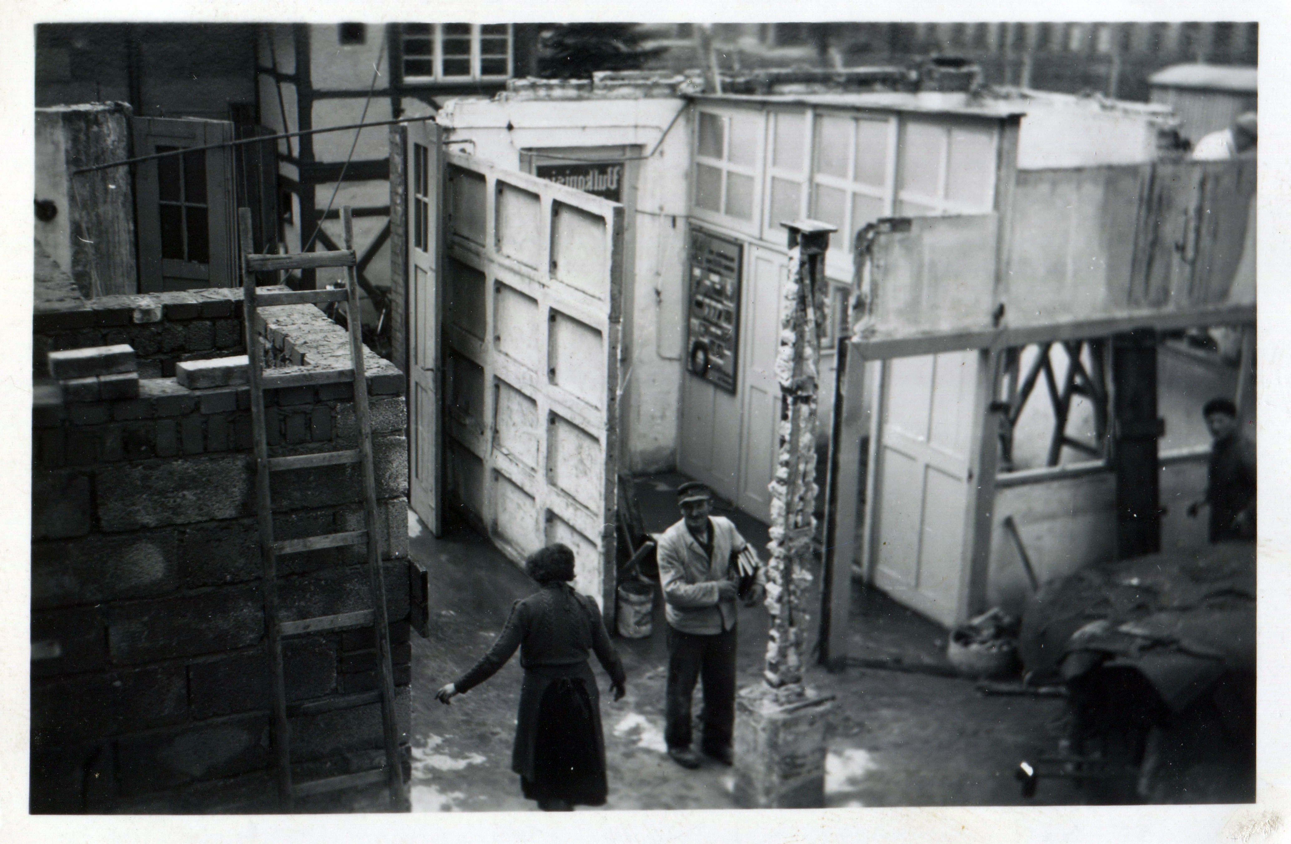| Beschreibung | Blick in die Werkstatt von Reifen-Reichel in der Langen Straße bei Abrissarbeiten, 1953 | ||