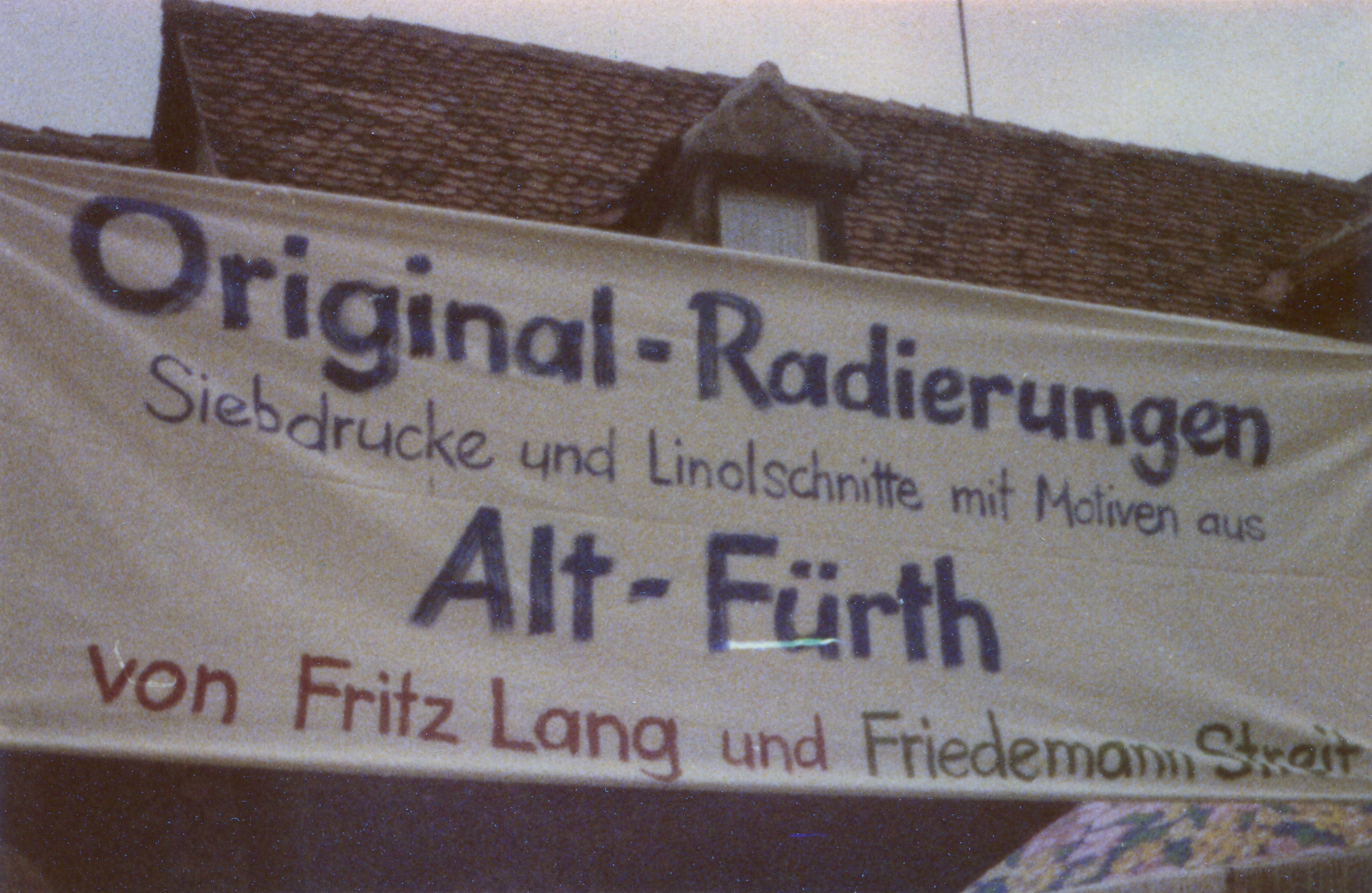 | Beschreibung | Am Fürther Grafflmarkt 1977 stellten die Künstler Fritz Lang und Friedemann Streit diverse Arbeiten live und persönlich her | ||