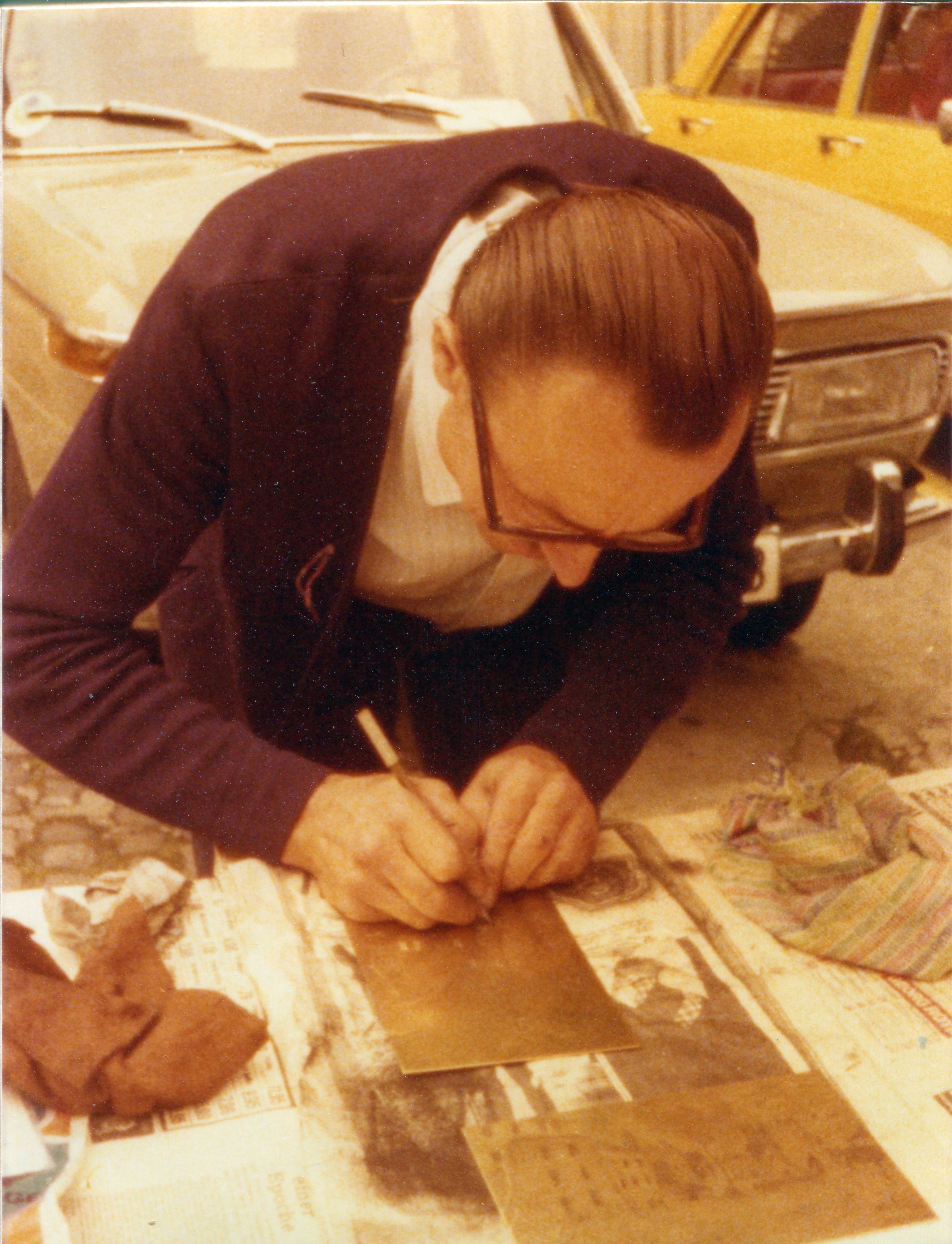 | Beschreibung | Am Fürther Grafflmarkt 1977 stellten die Künstler Fritz Lang und Friedemann Streit (siehe Abbildung) diverse Arbeiten live und persönlich her | ||